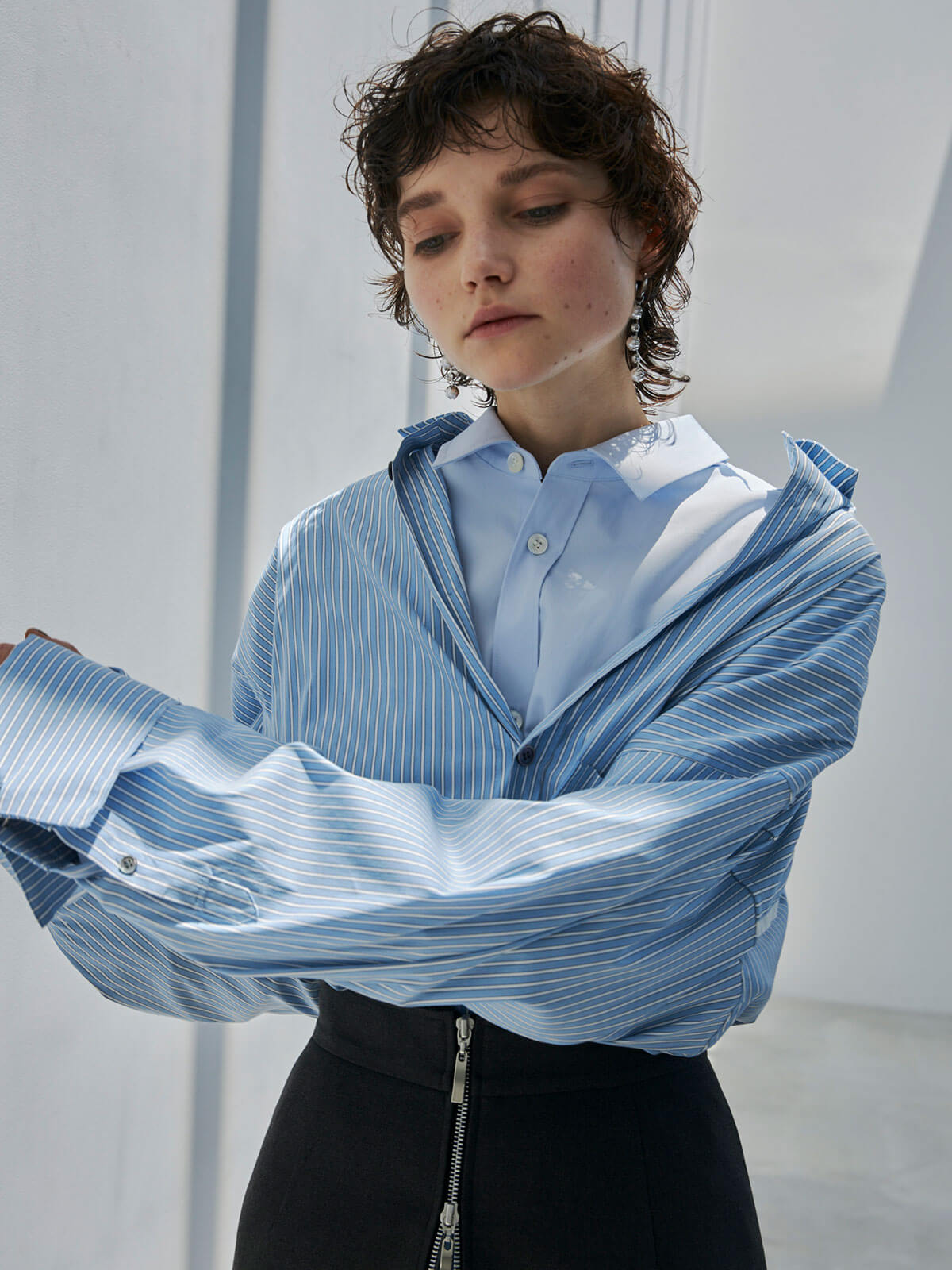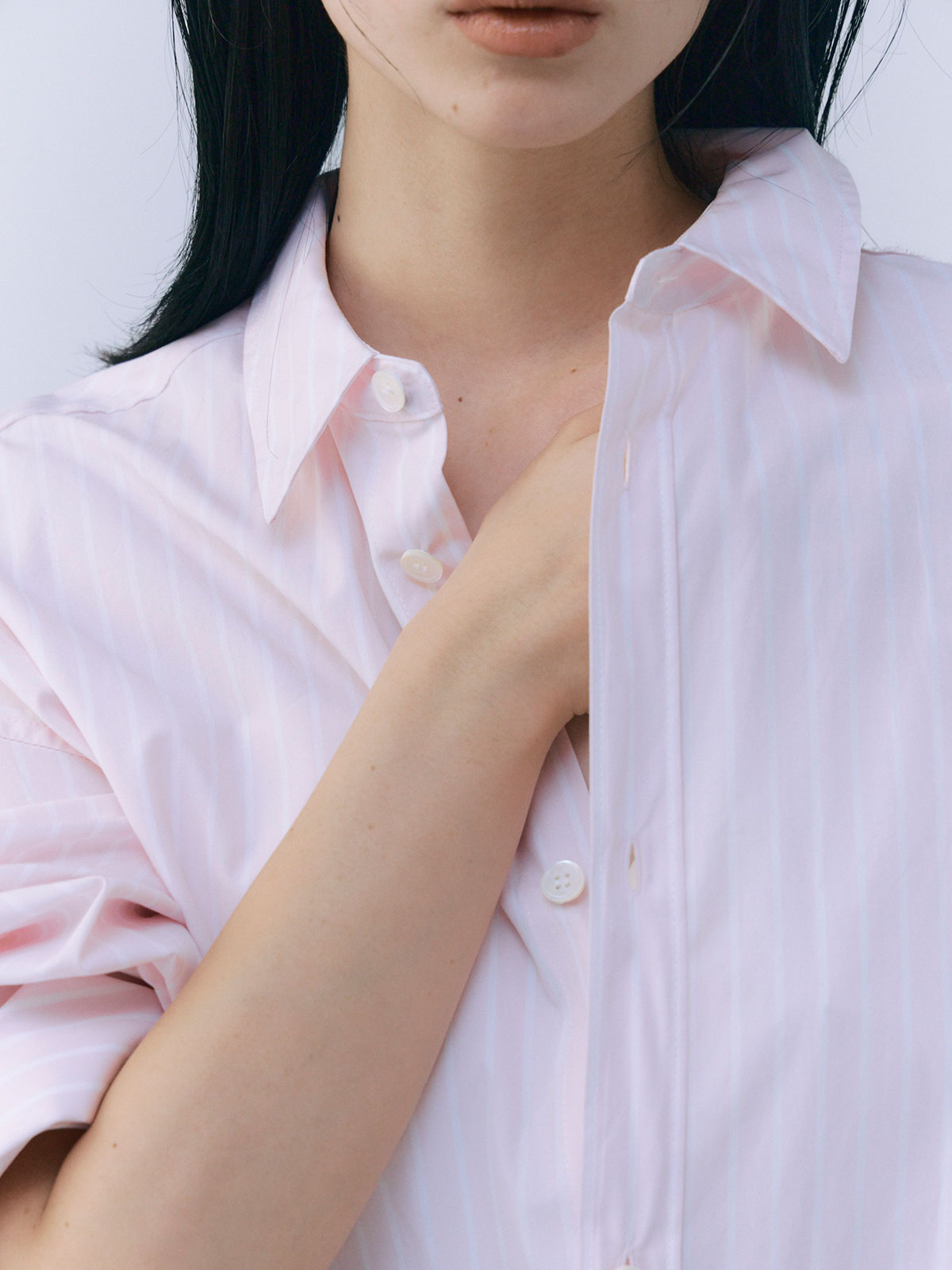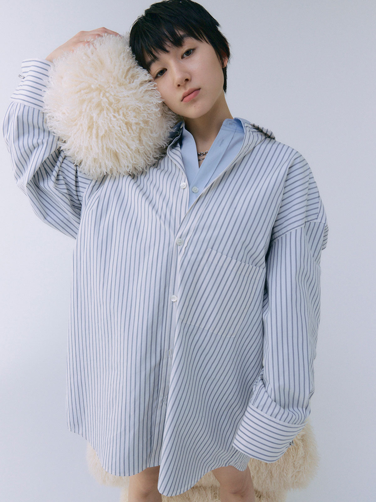 メンズライクなシルエットが特徴のストライプシャツにカラーが追加。