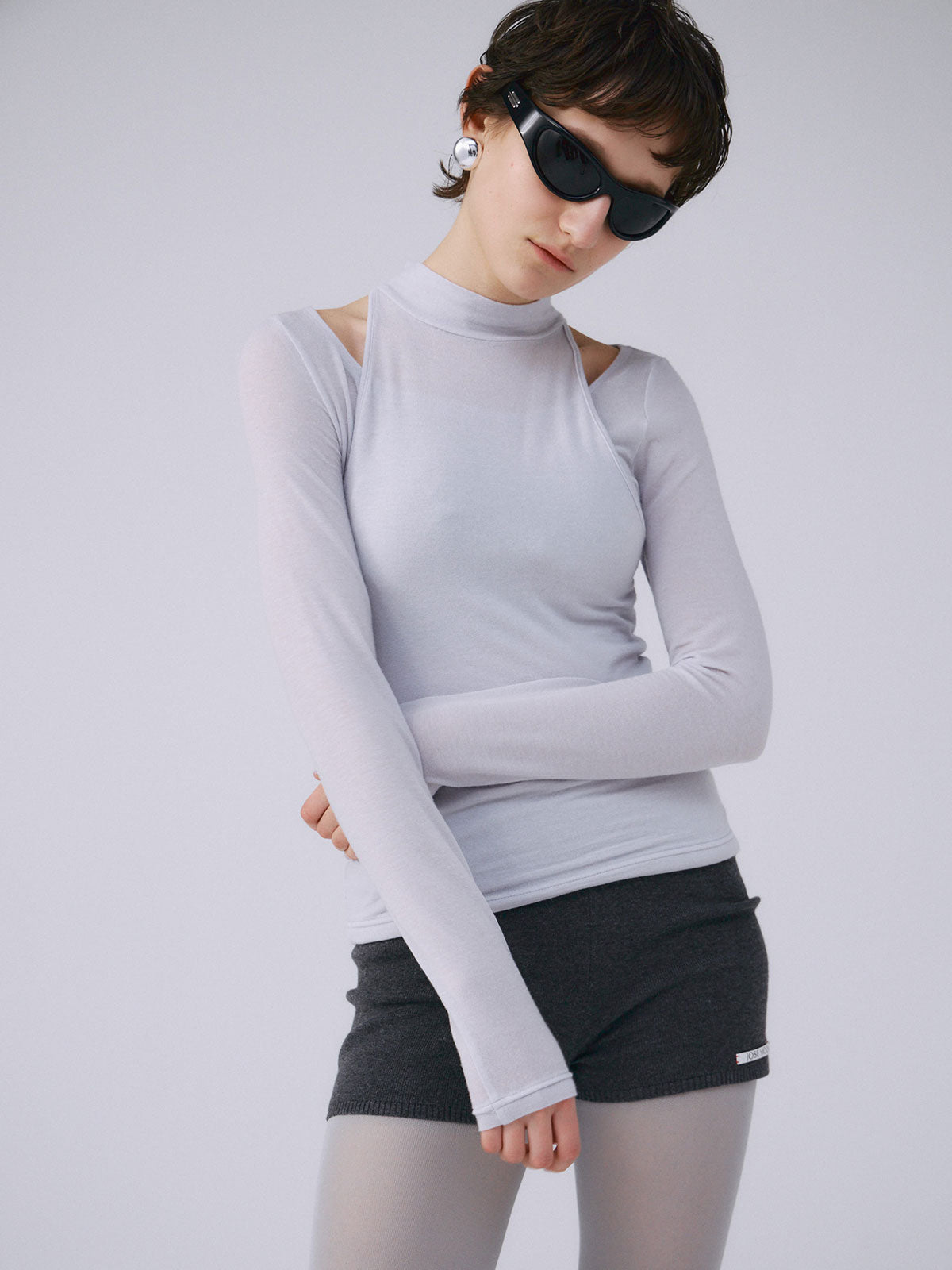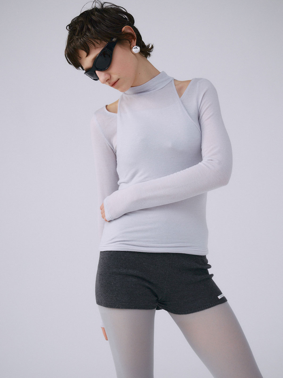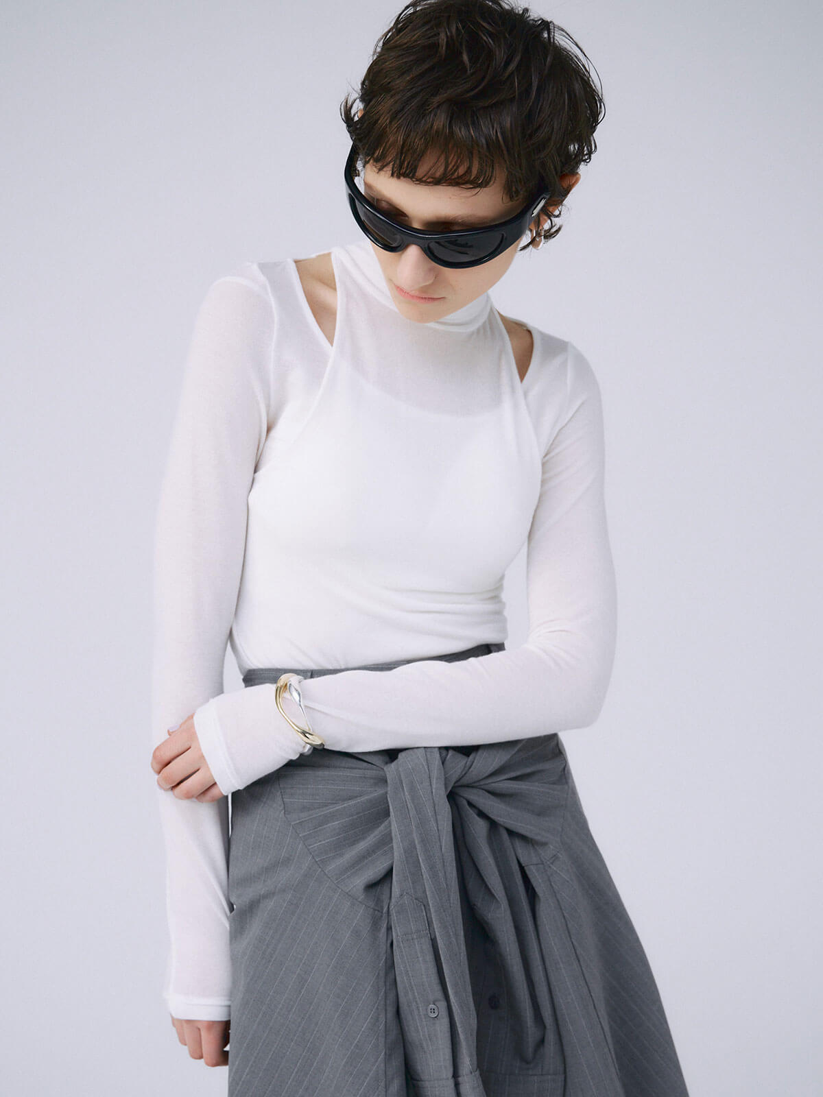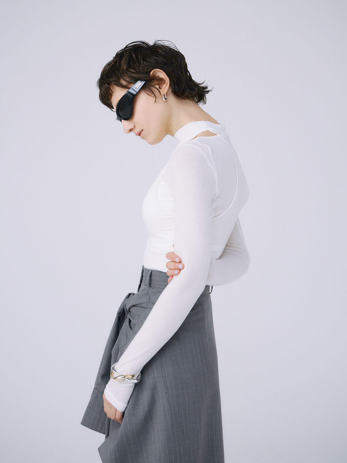 カシミア混の上質で肌触りの良いカットソー素材を使用したデザイントップス。
