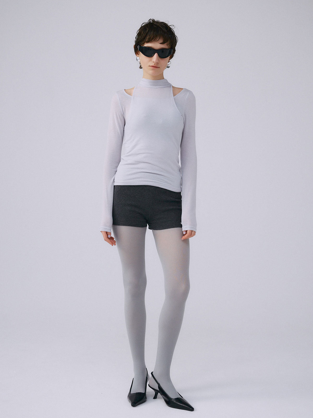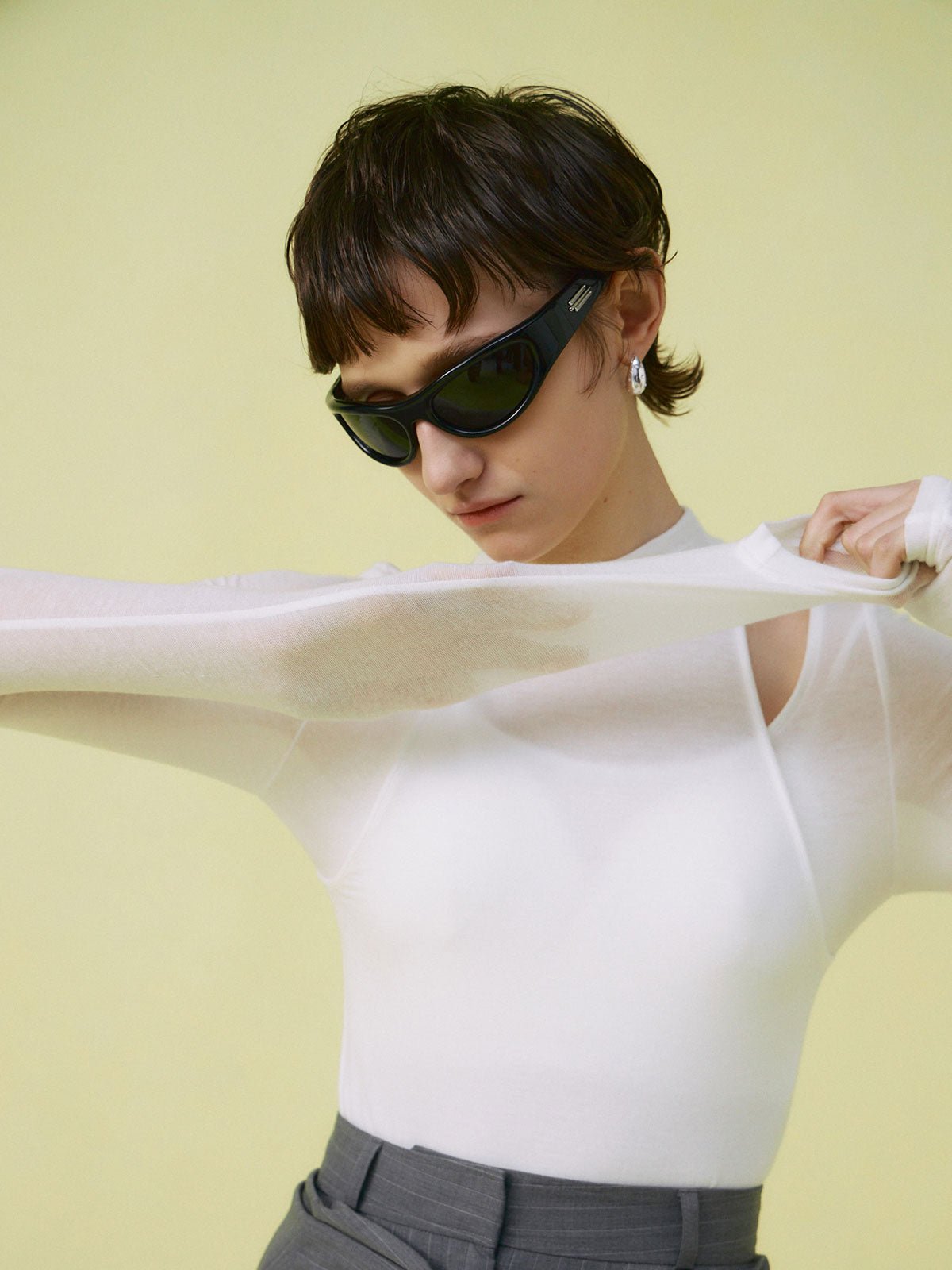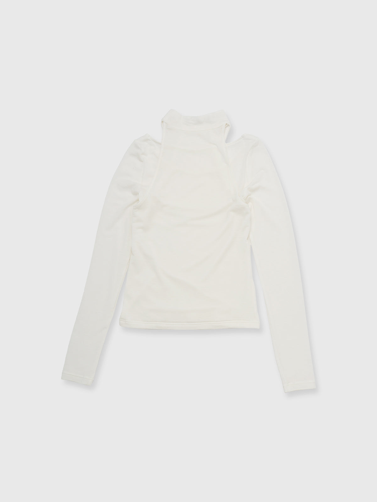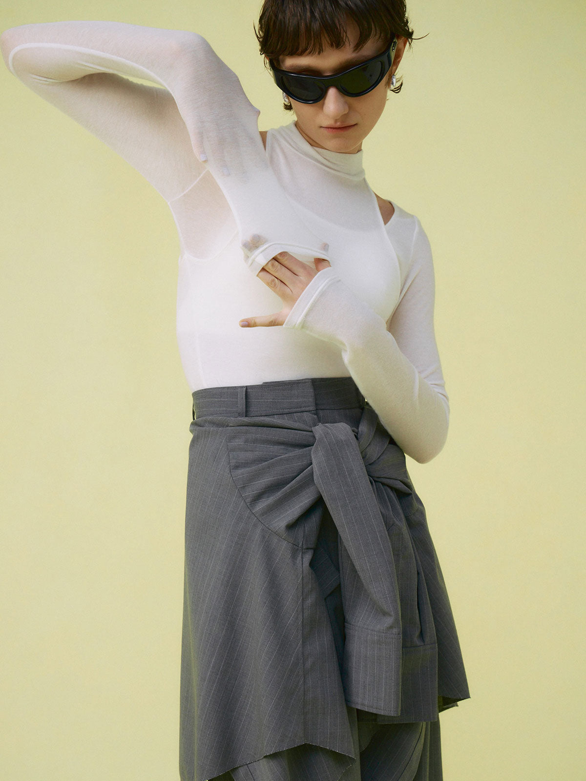カシミア混の上質で肌触りの良いカットソー素材を使用したデザイントップス。