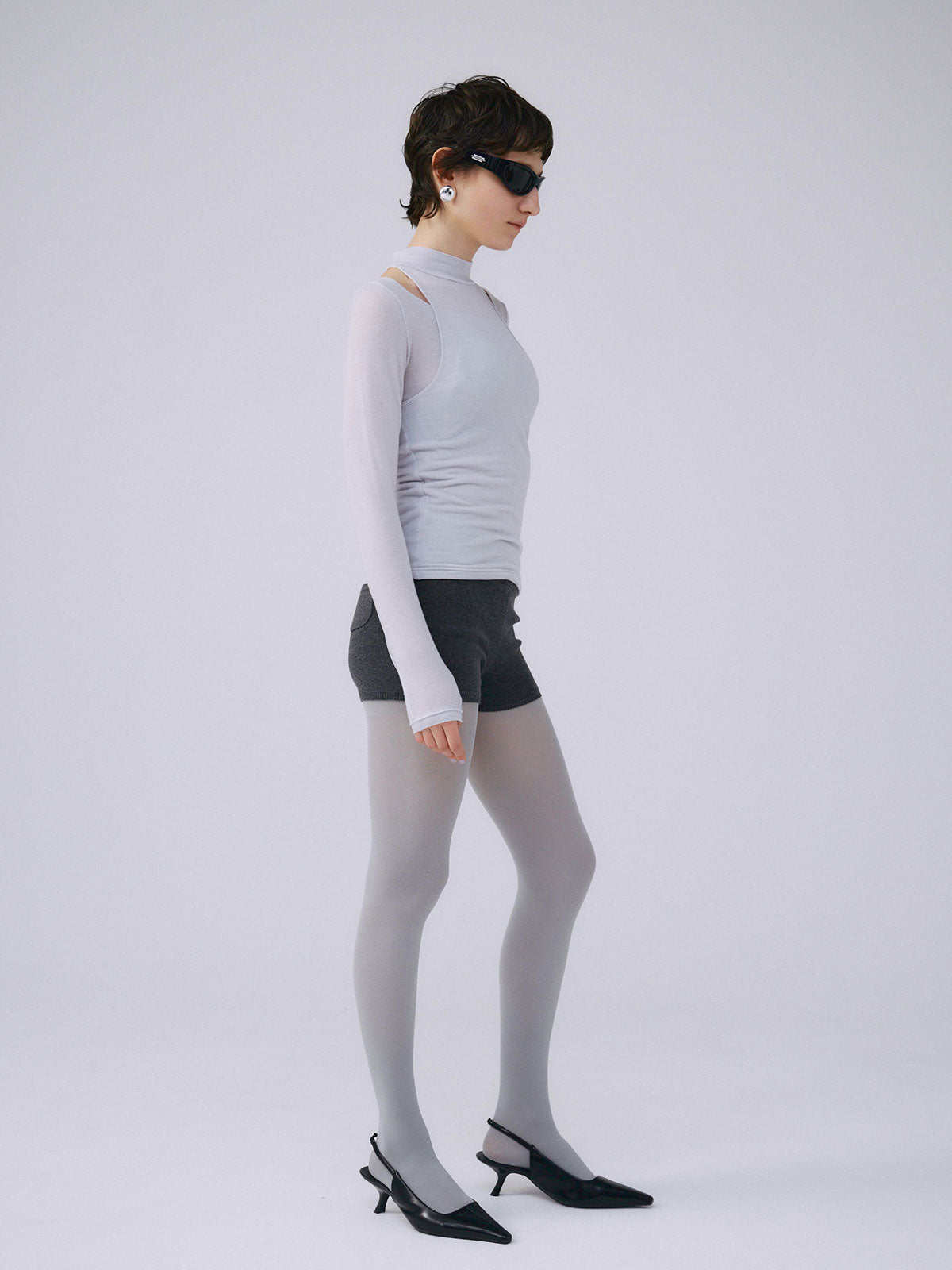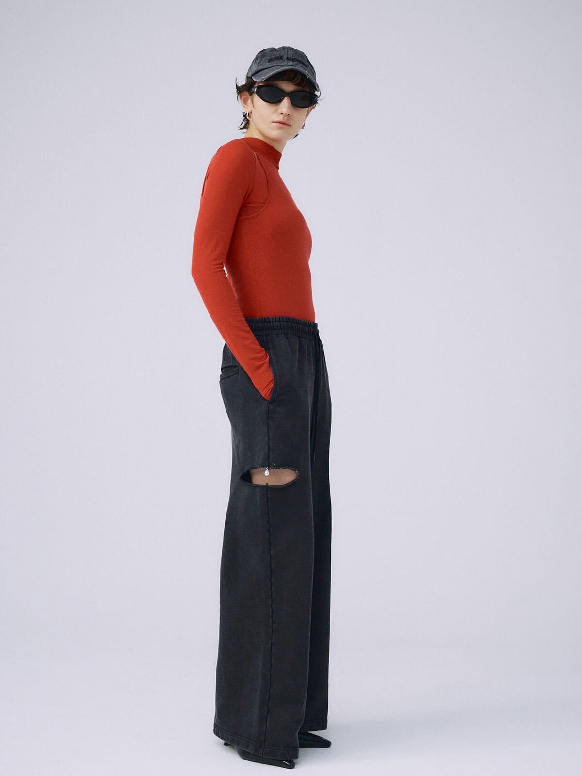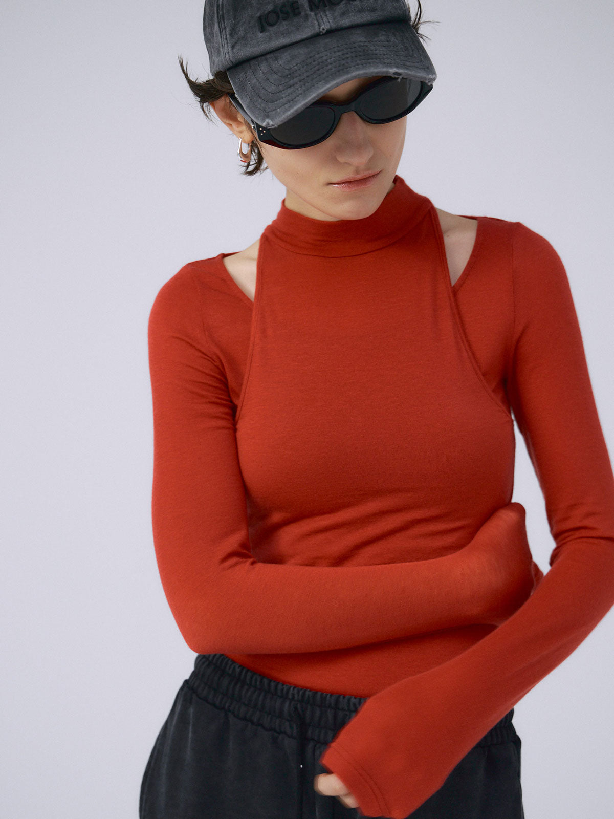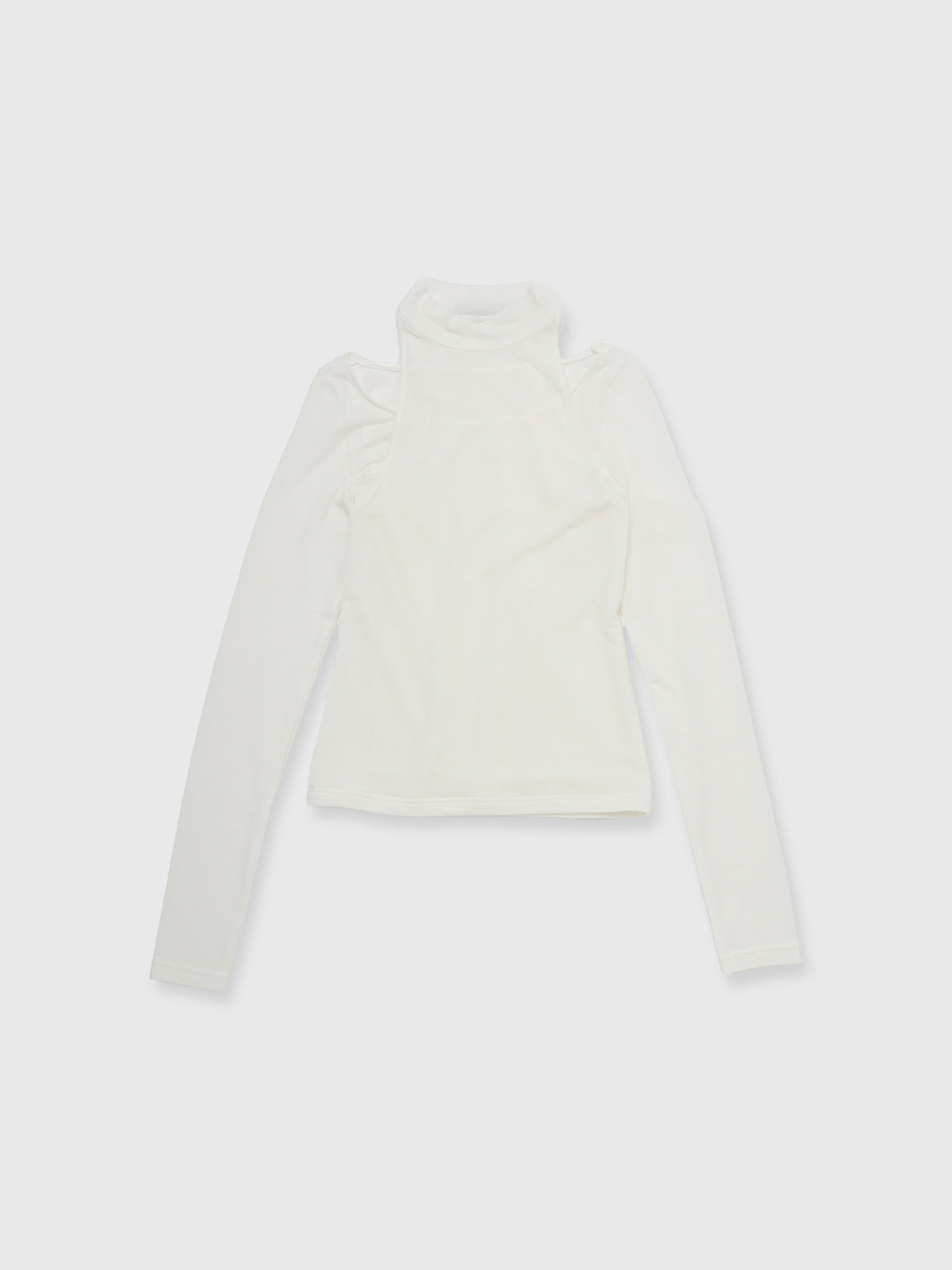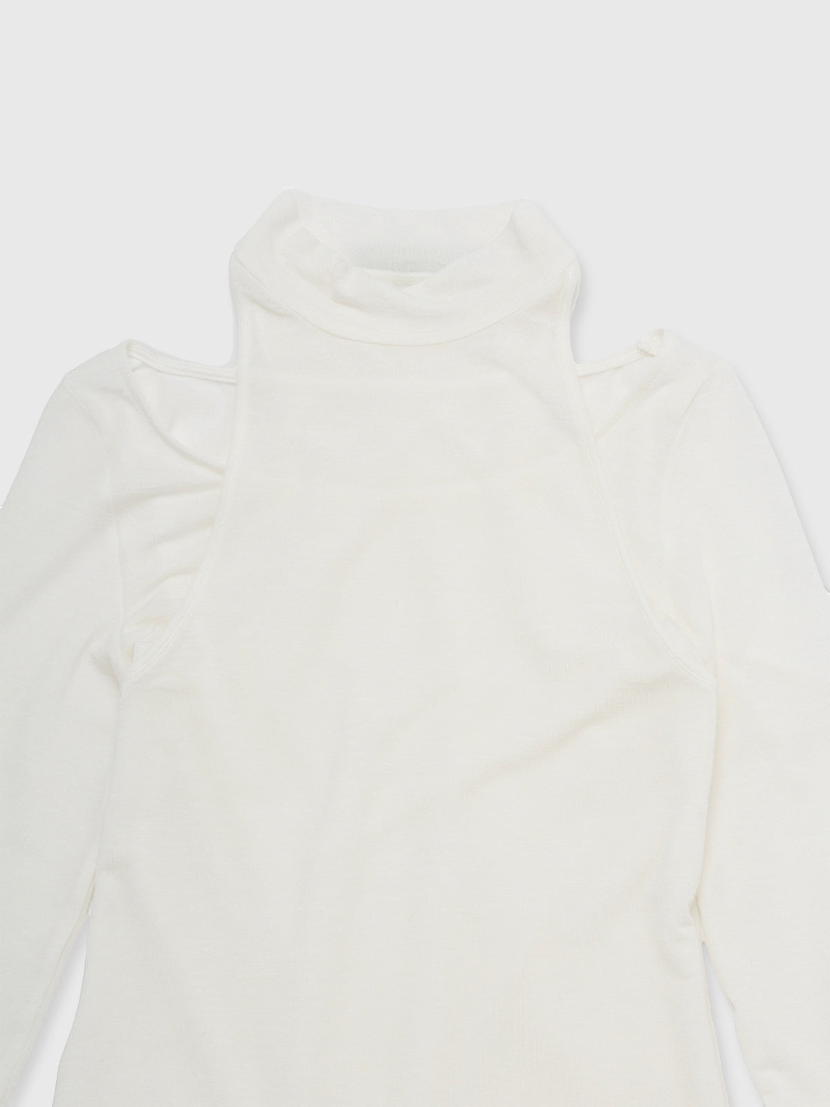 カシミア混の上質で肌触りの良いカットソー素材を使用したデザイントップス。