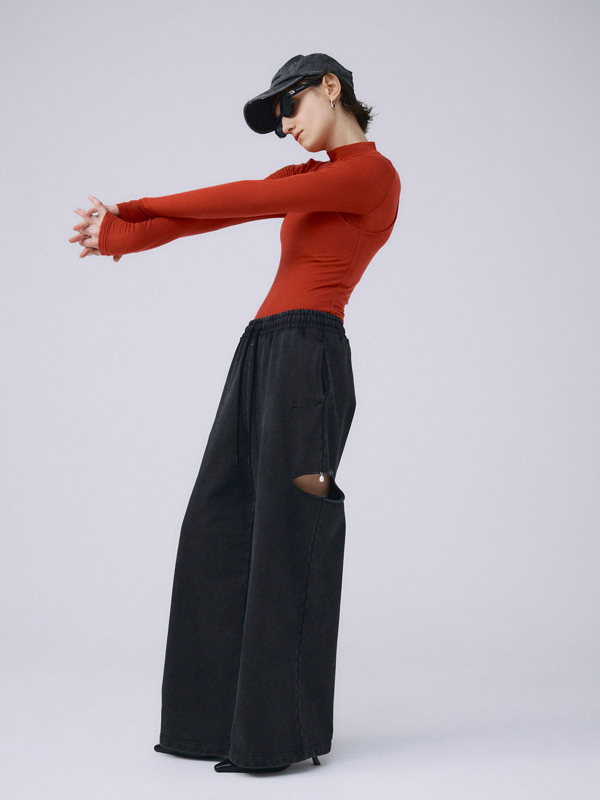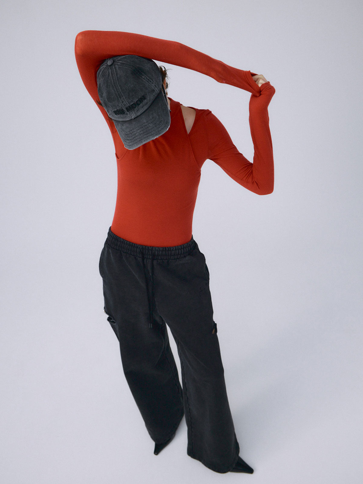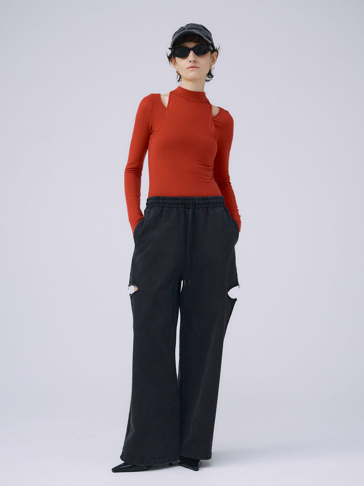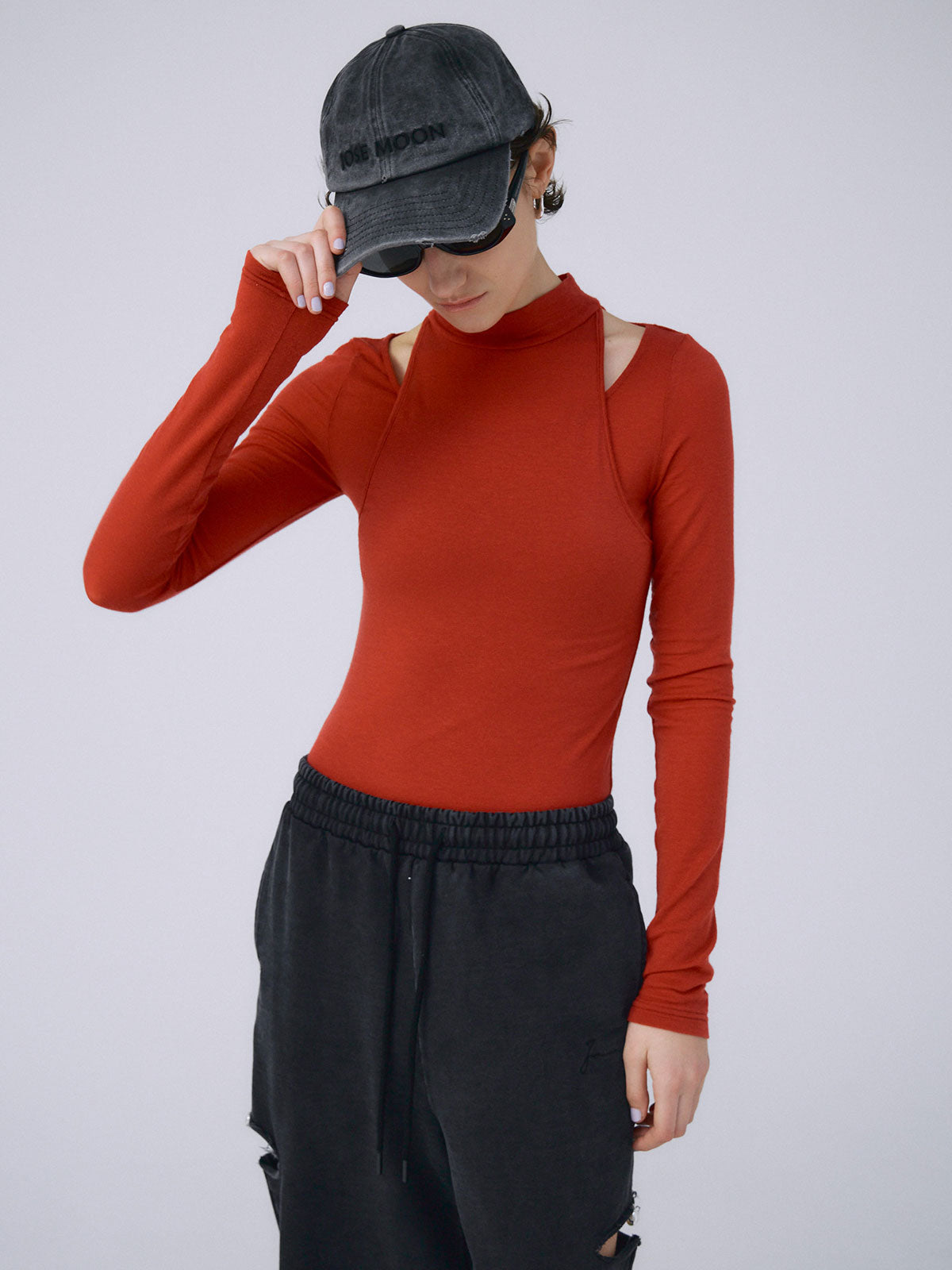 カシミア混の上質で肌触りの良いカットソー素材を使用したデザイントップス。