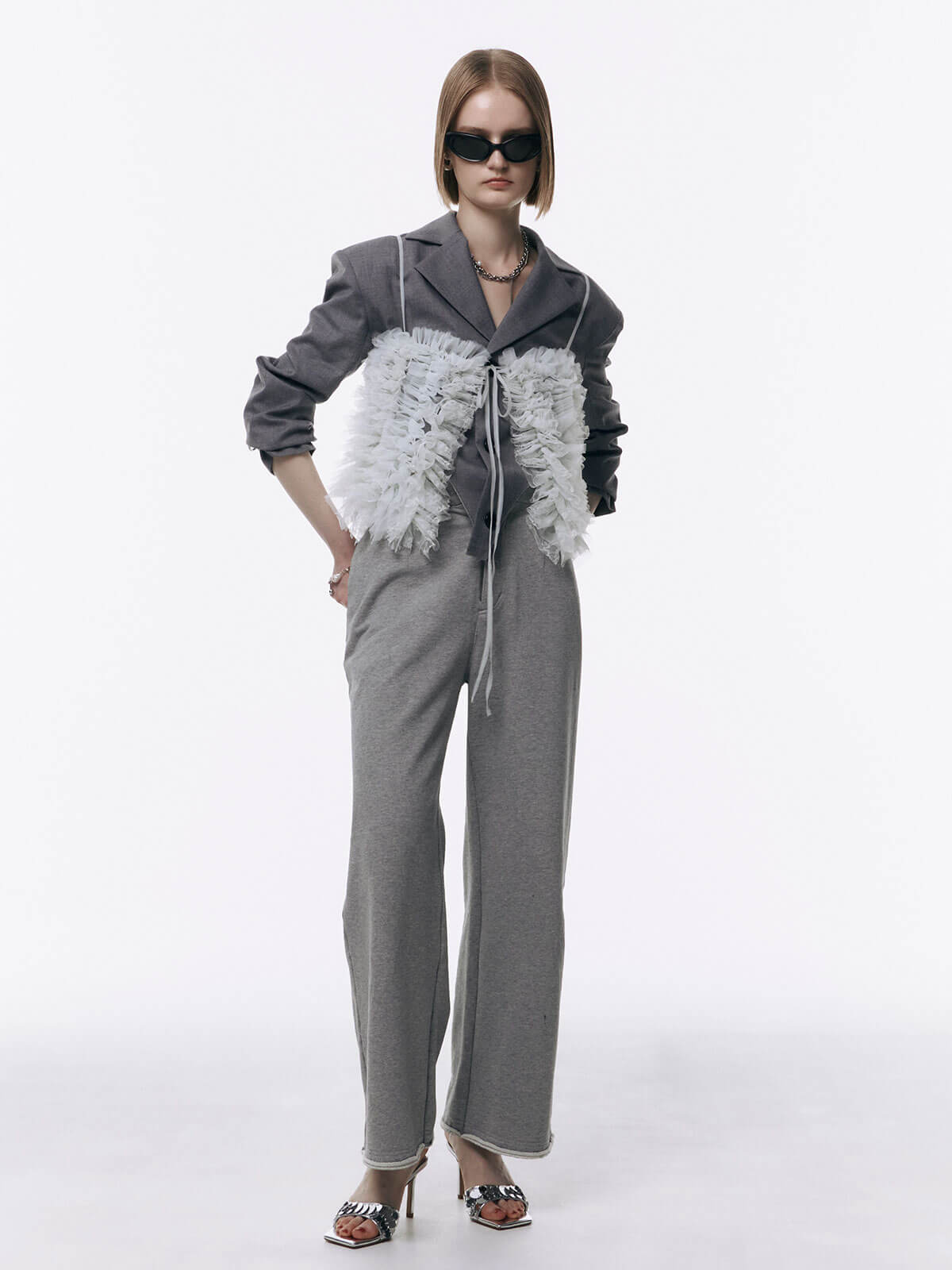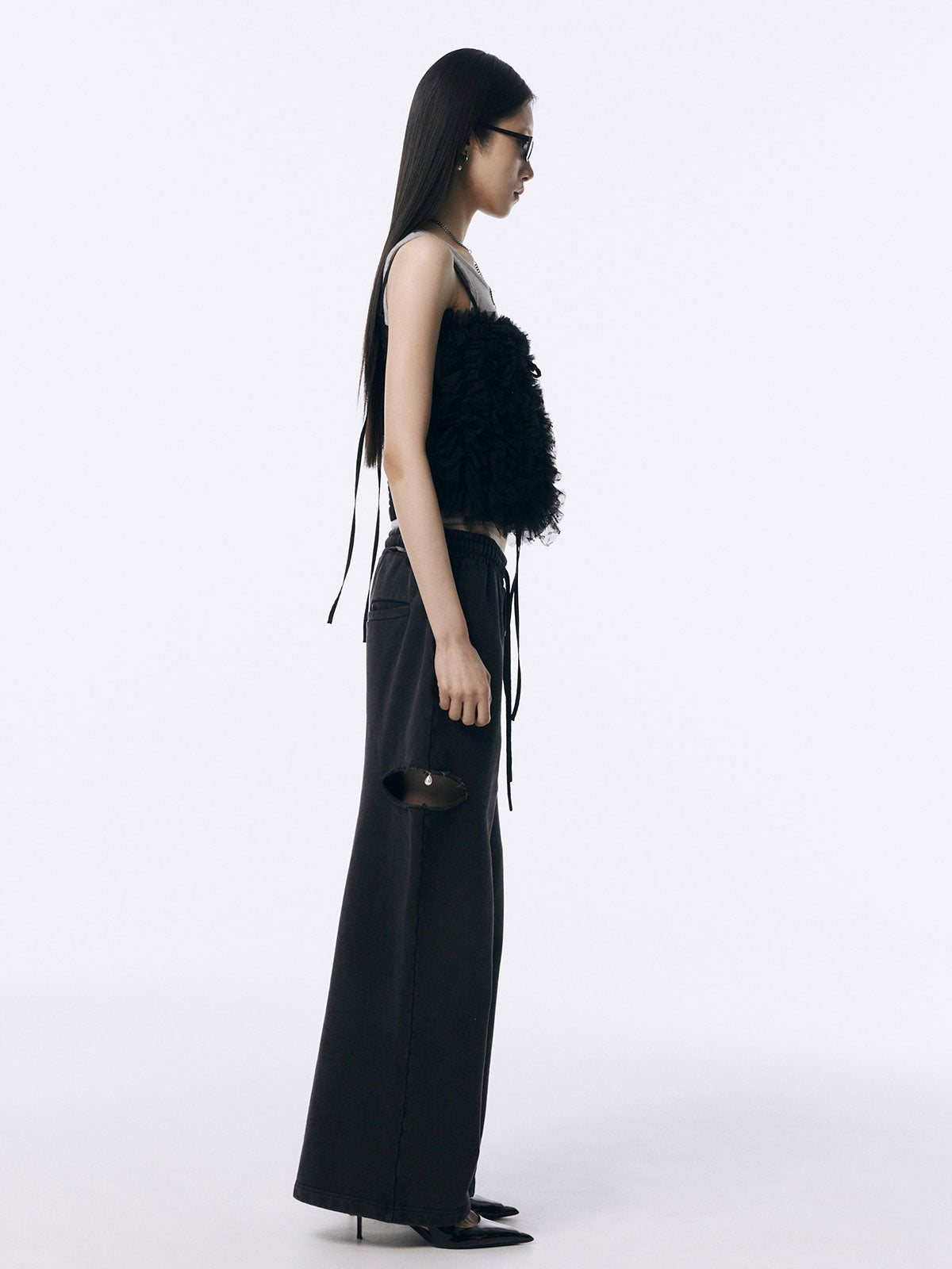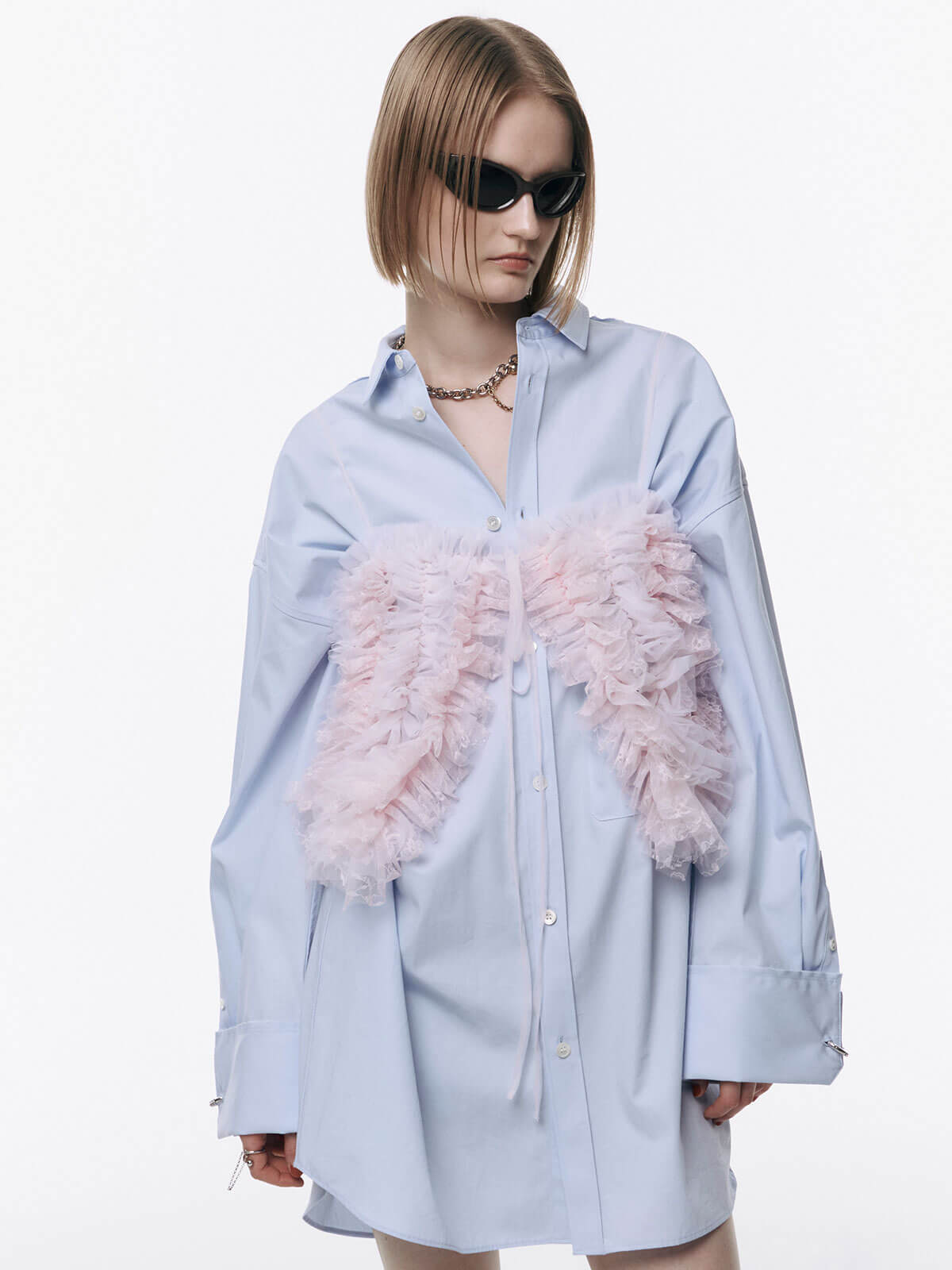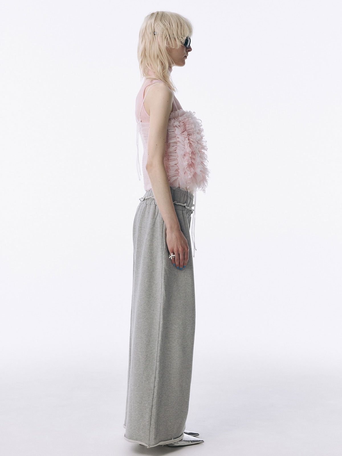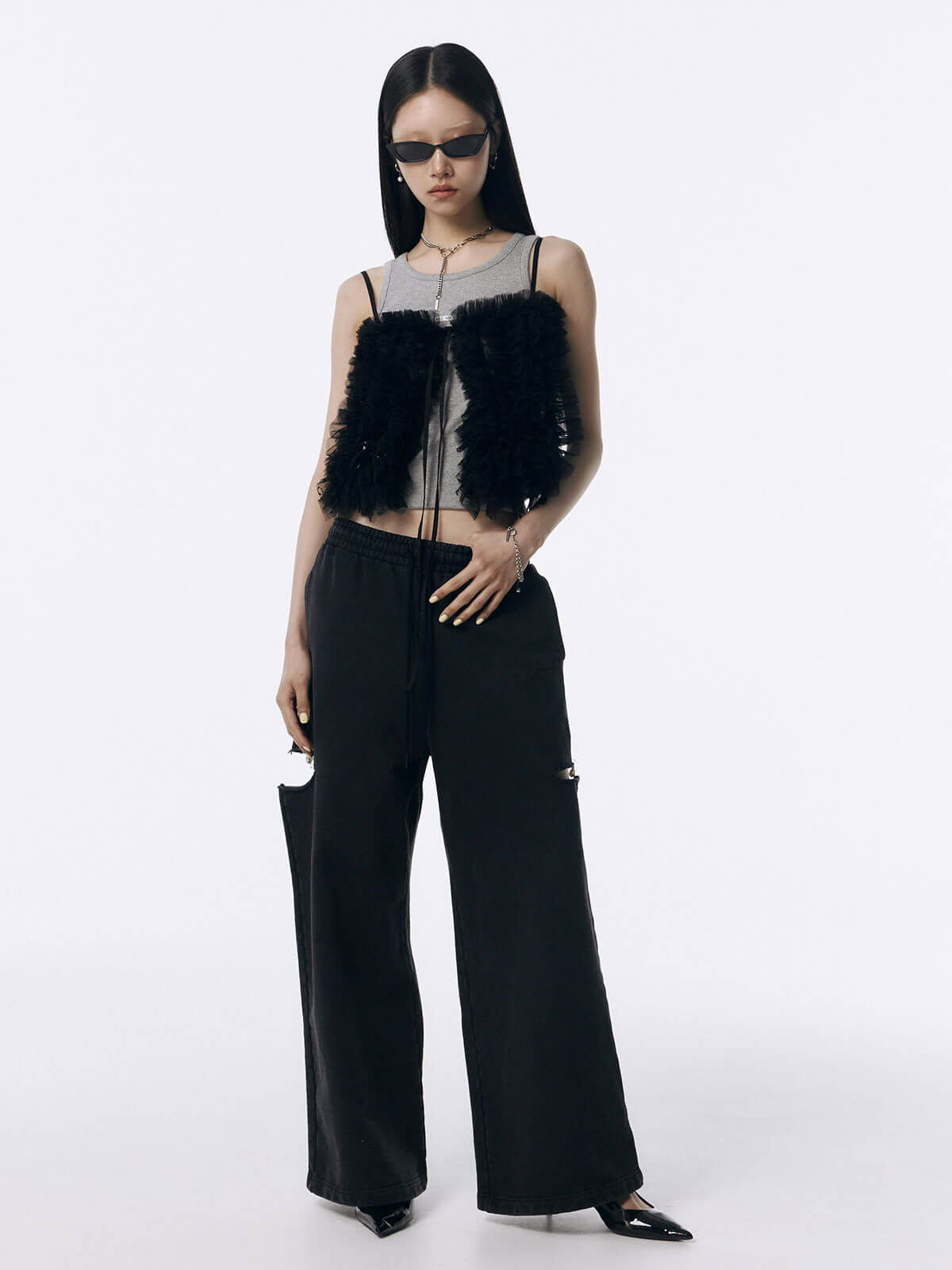 何層にも重なるチュールとレースのフリルを交互にあしらい、フリルの長さに変化をつけ表情を楽しめるレイヤードキャミソール。