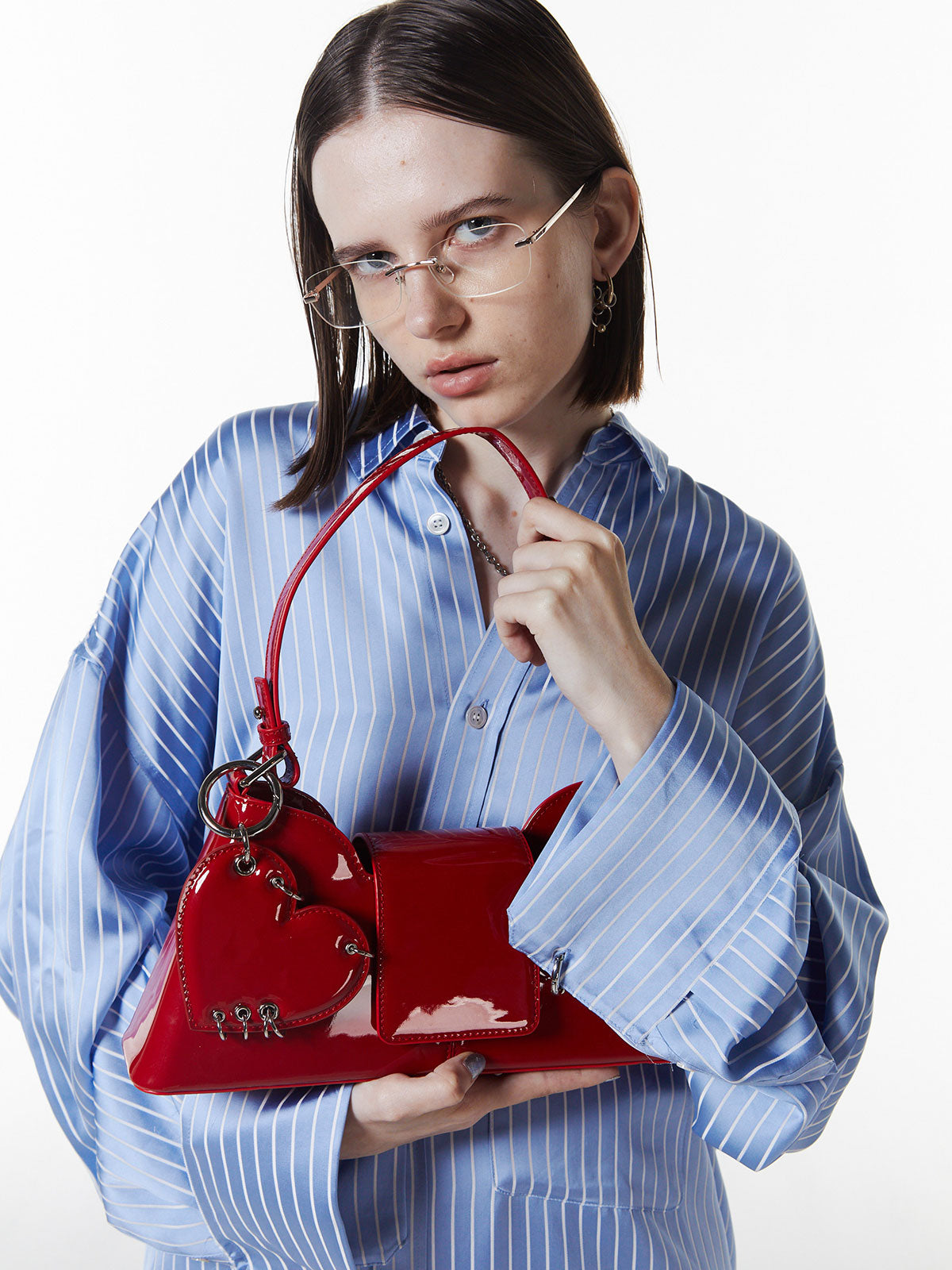 【JUSTINE CLENQUET】MARLA RED LIPSTICK BAG RED (WITH HEART KEYCHAIN)