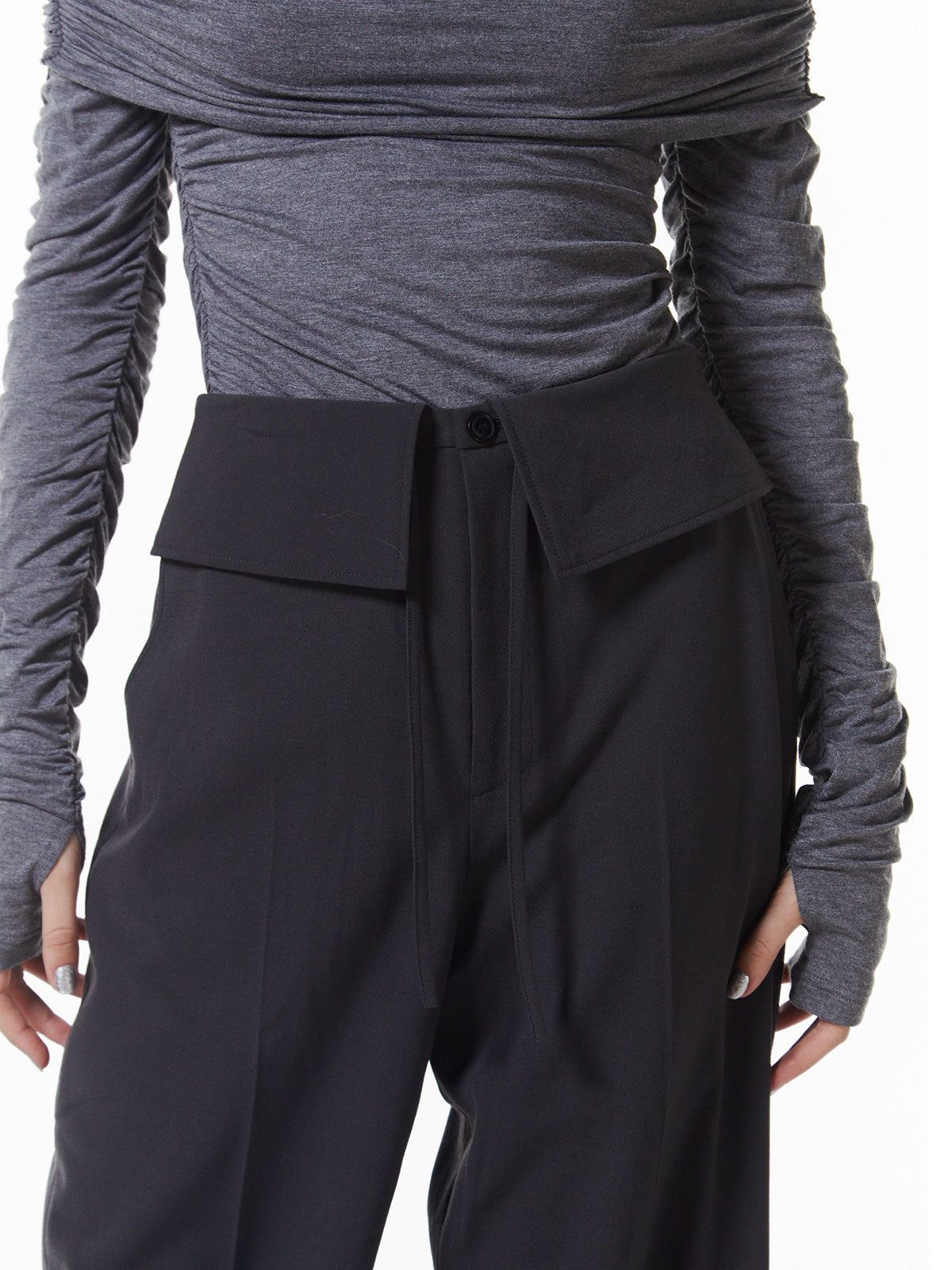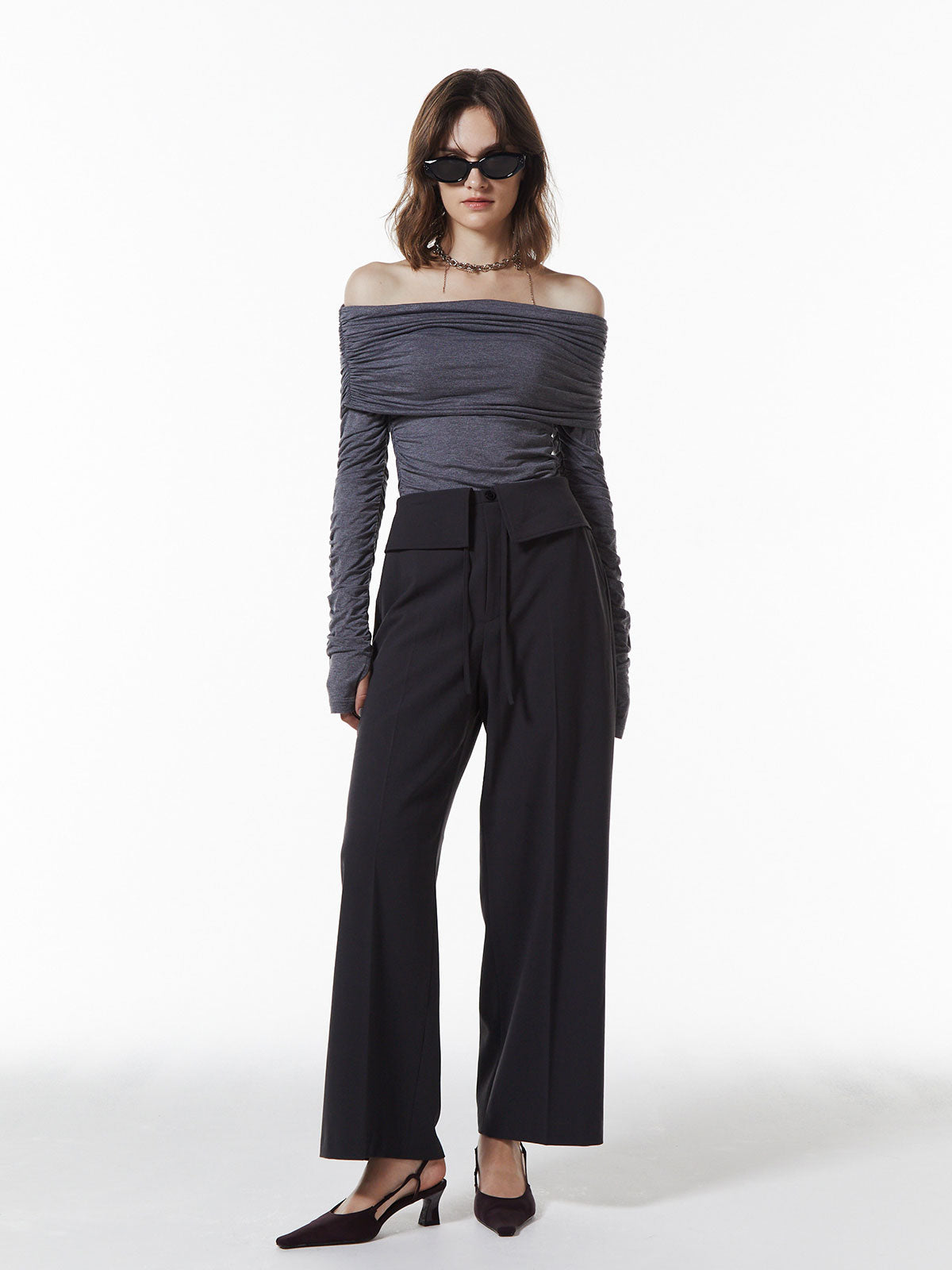 シンプルなデザインの中に、ウエスト部分の折り返しディテールを加えることで、タックインした際も存在感を発揮します。
