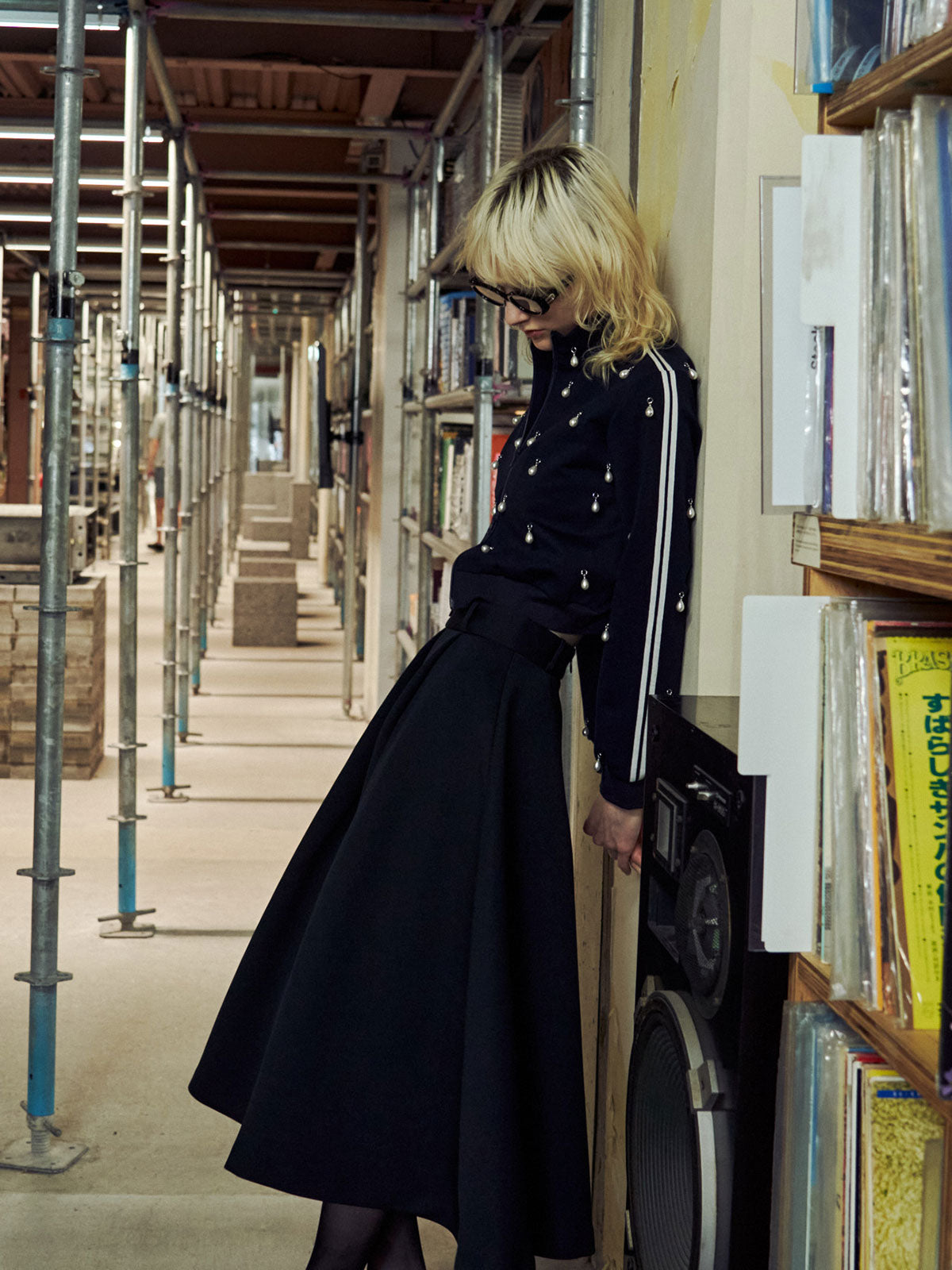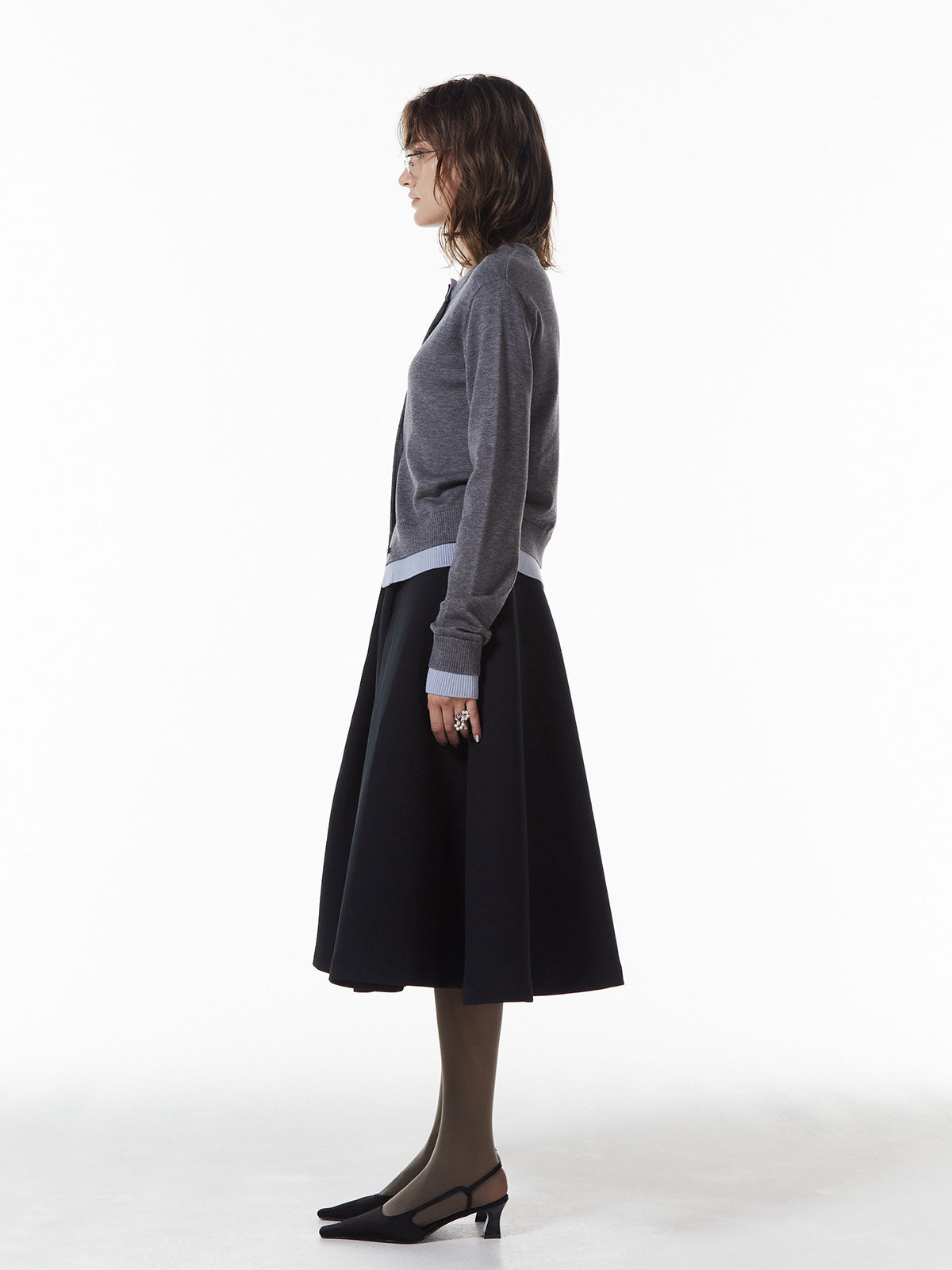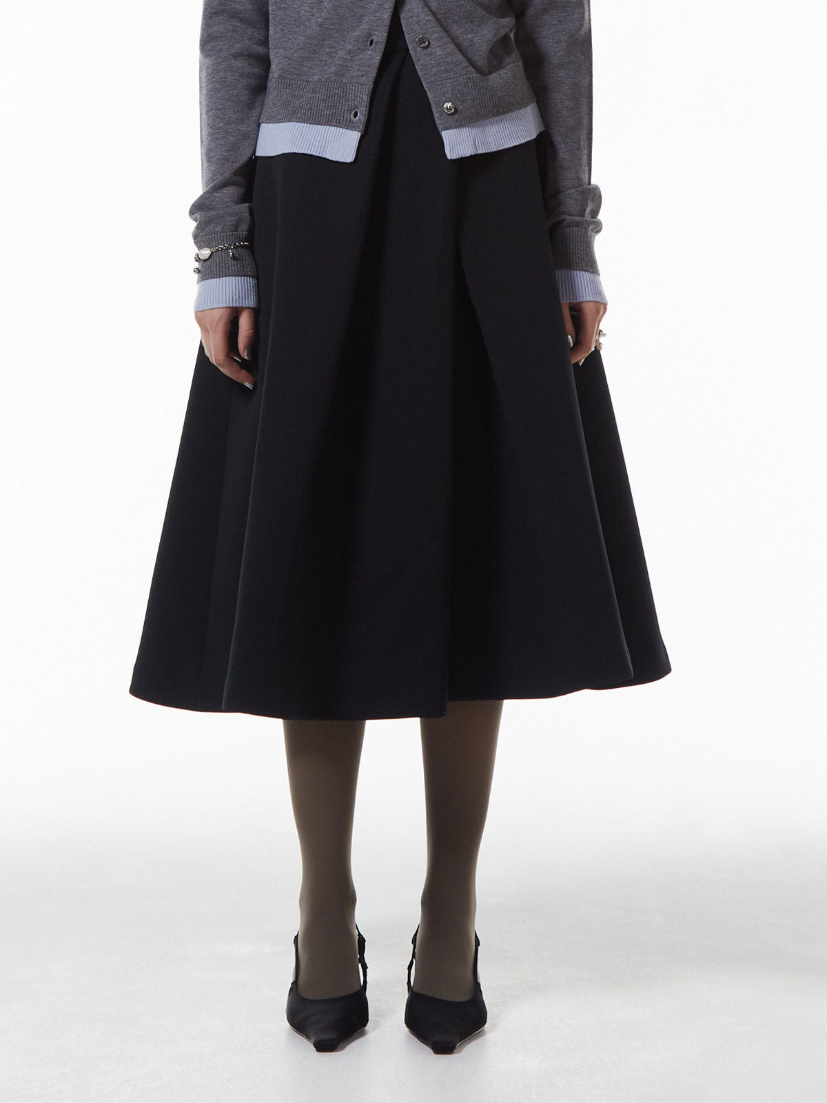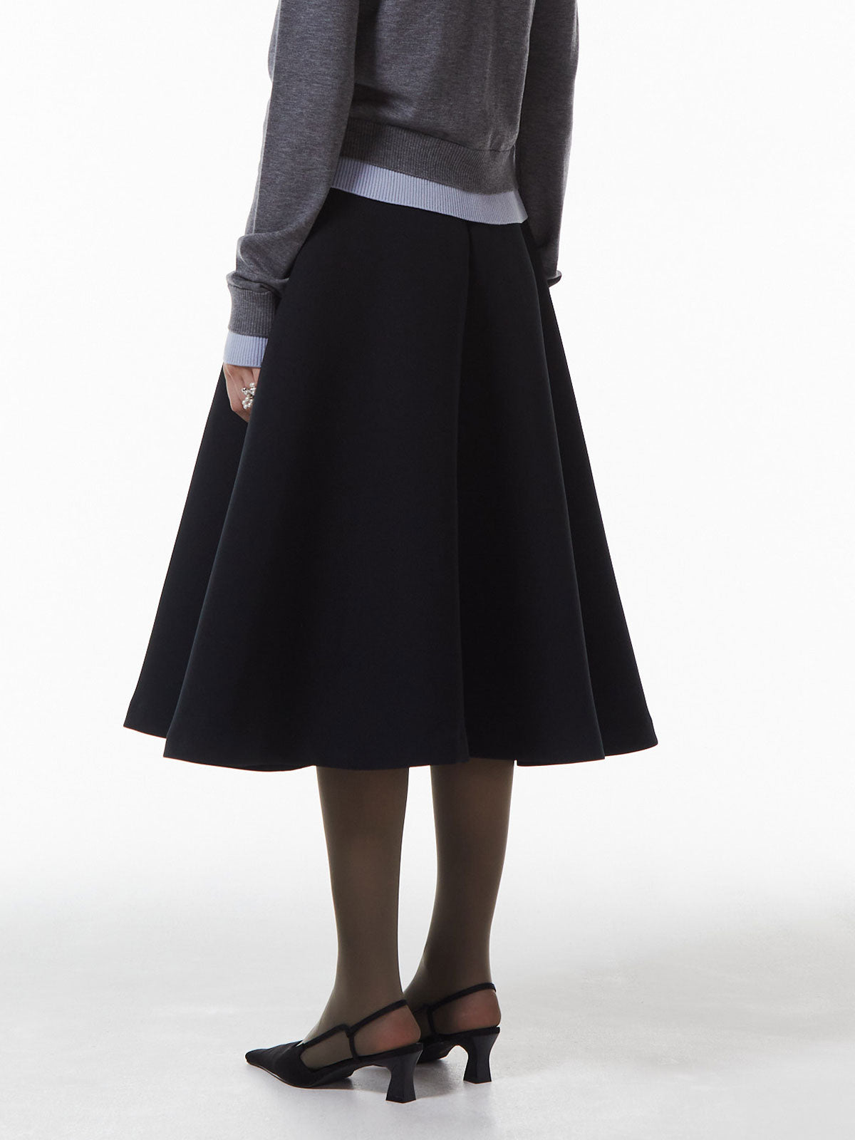マットな質感と張り感を兼ね備えた高密度ボンディング素材のミディ丈スカート。