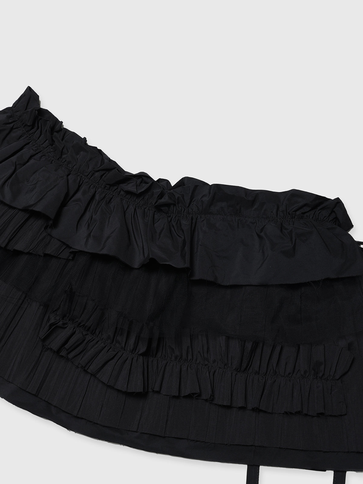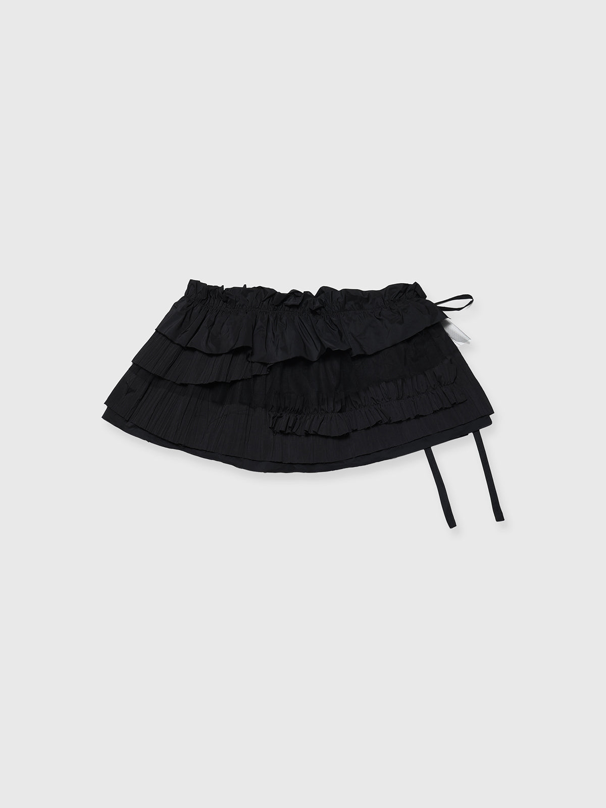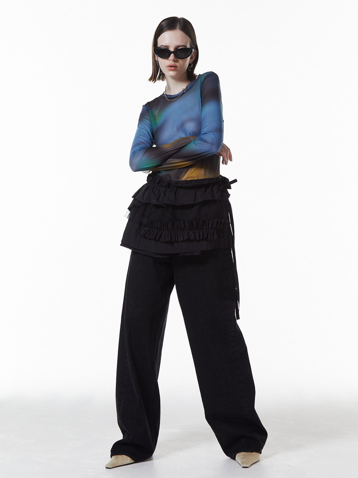 シルエットにアクセントを添える繊細なフリルディテールが、モードな中に甘さを宿す絶妙なバランスを演出します。