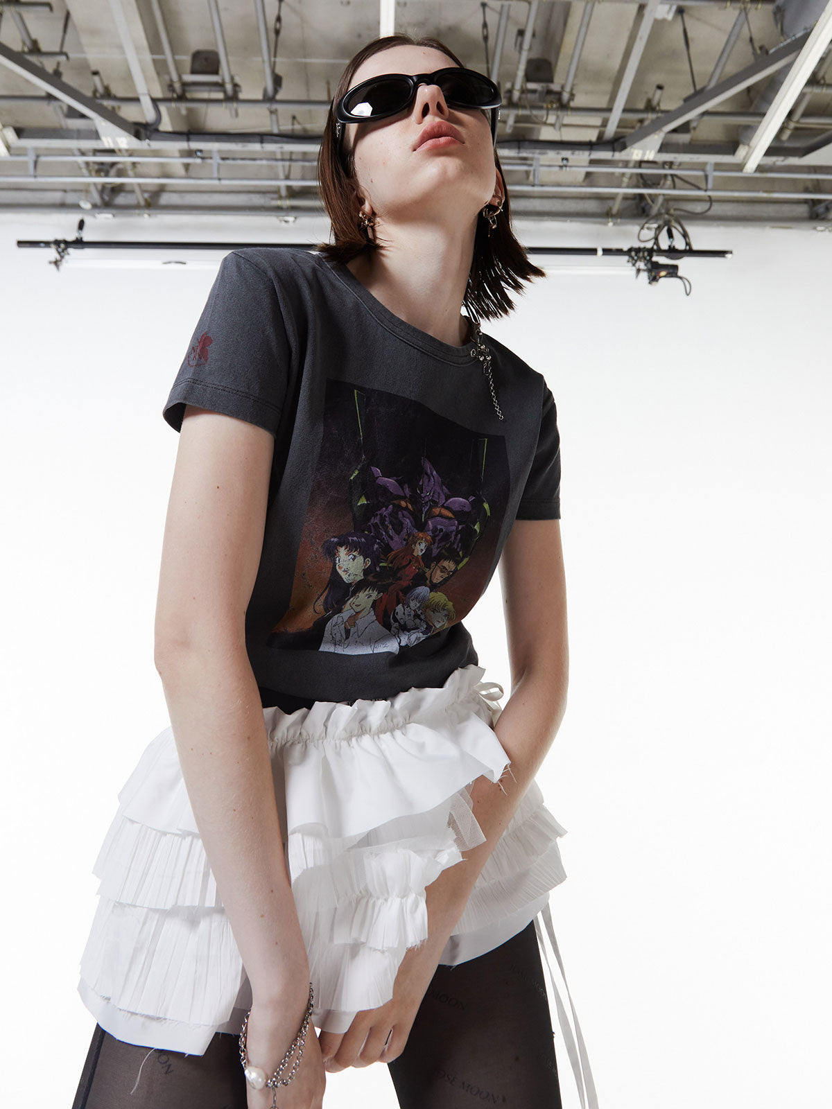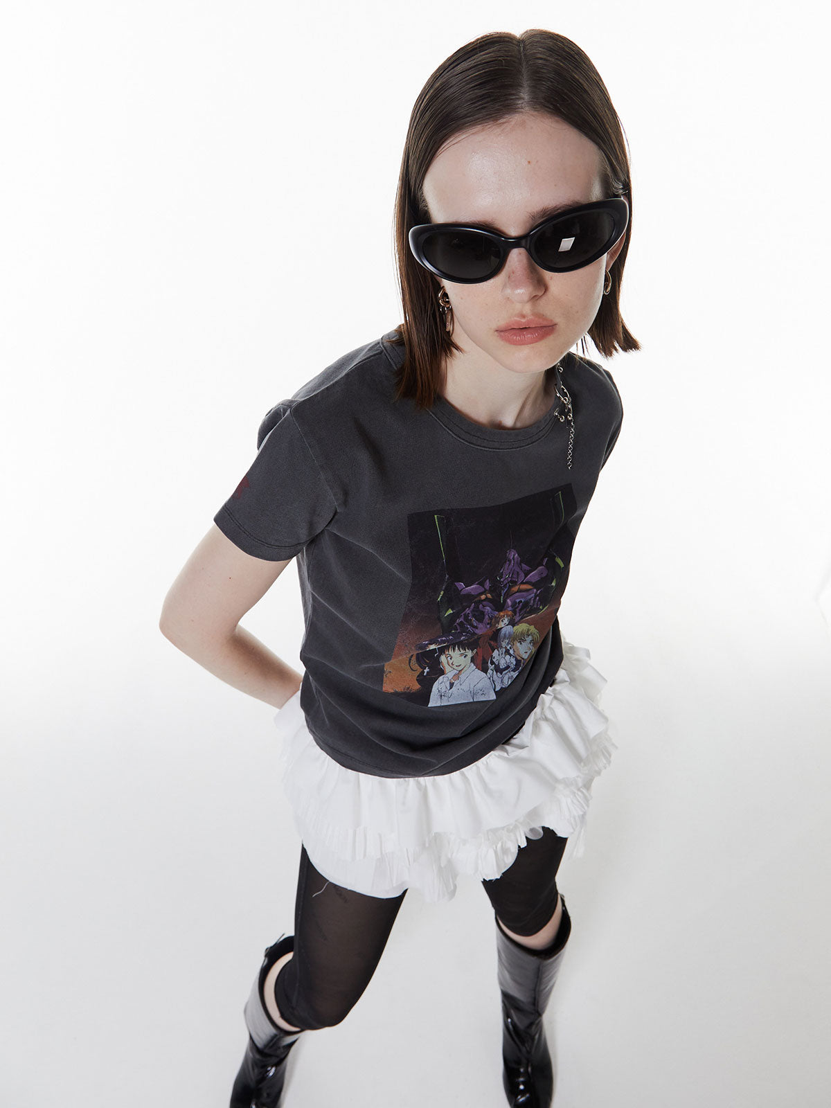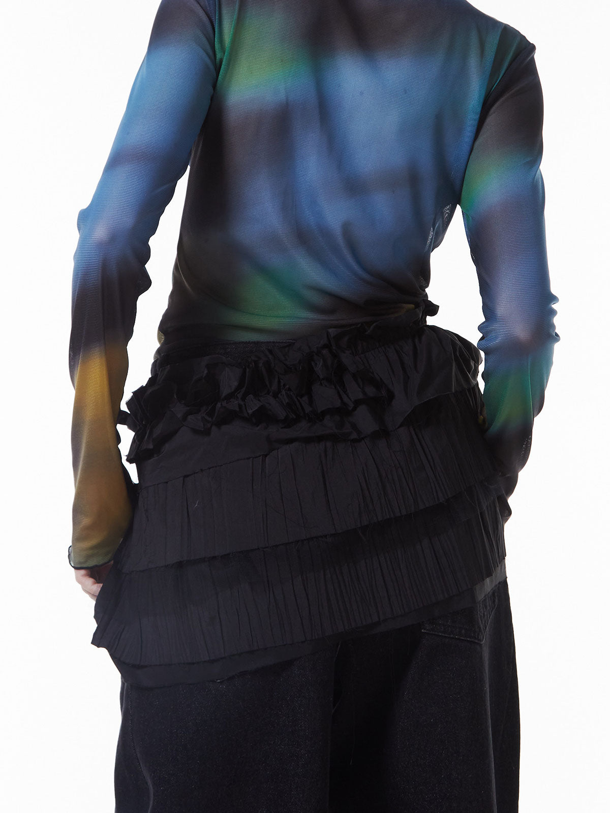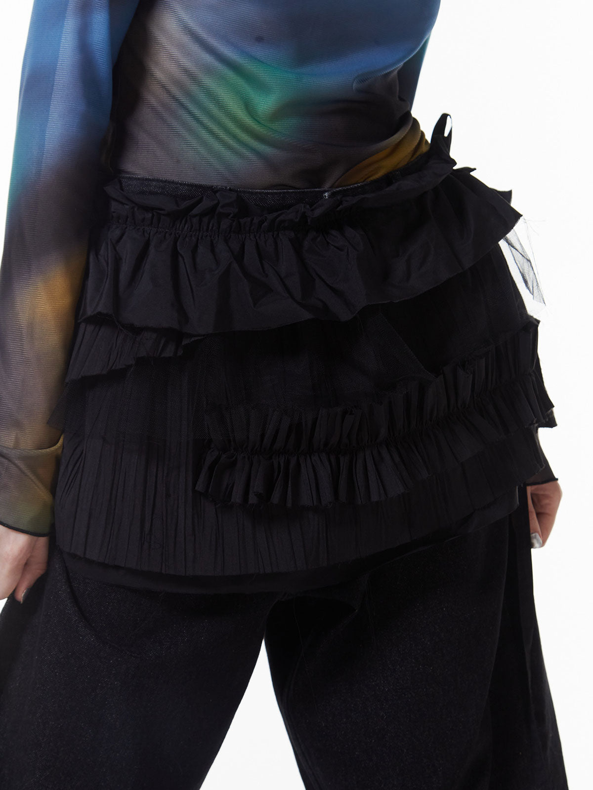 シルエットにアクセントを添える繊細なフリルディテールが、モードな中に甘さを宿す絶妙なバランスを演出します。