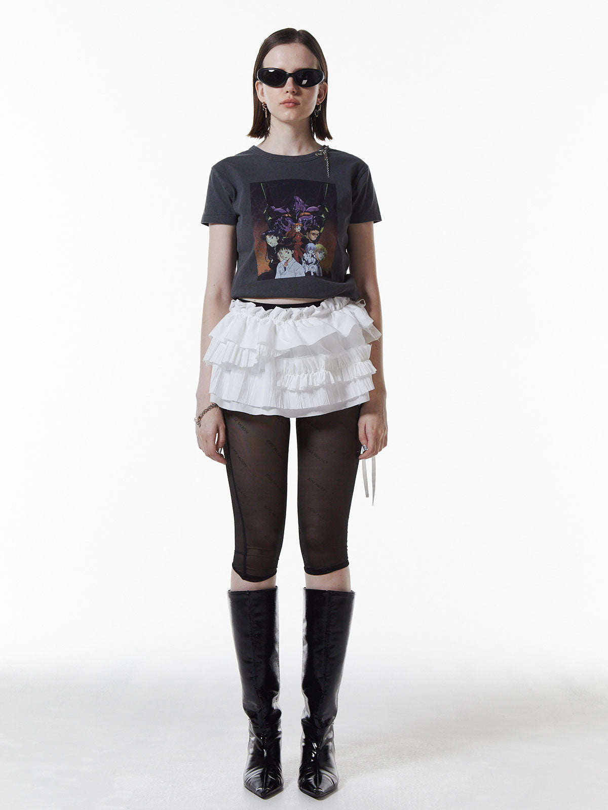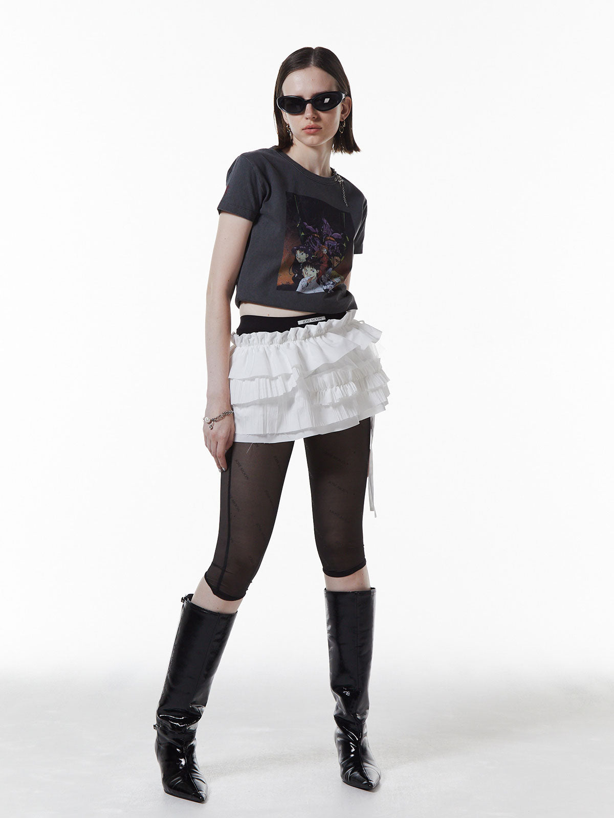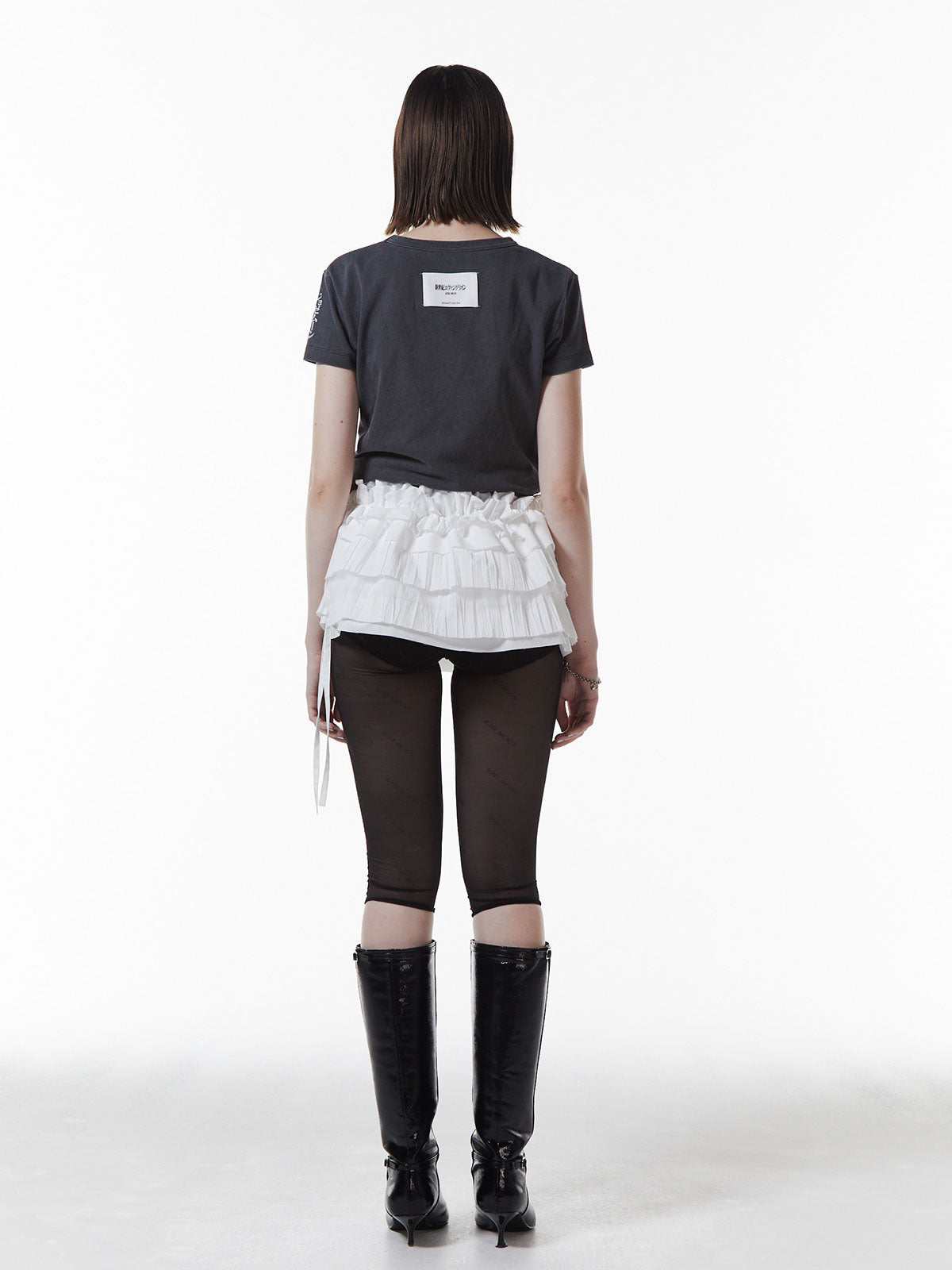 存在感のあるカバースカートなのでシンプルなトップスを合わせるだけで、スタイル全体をモードに引き上げてくれます。