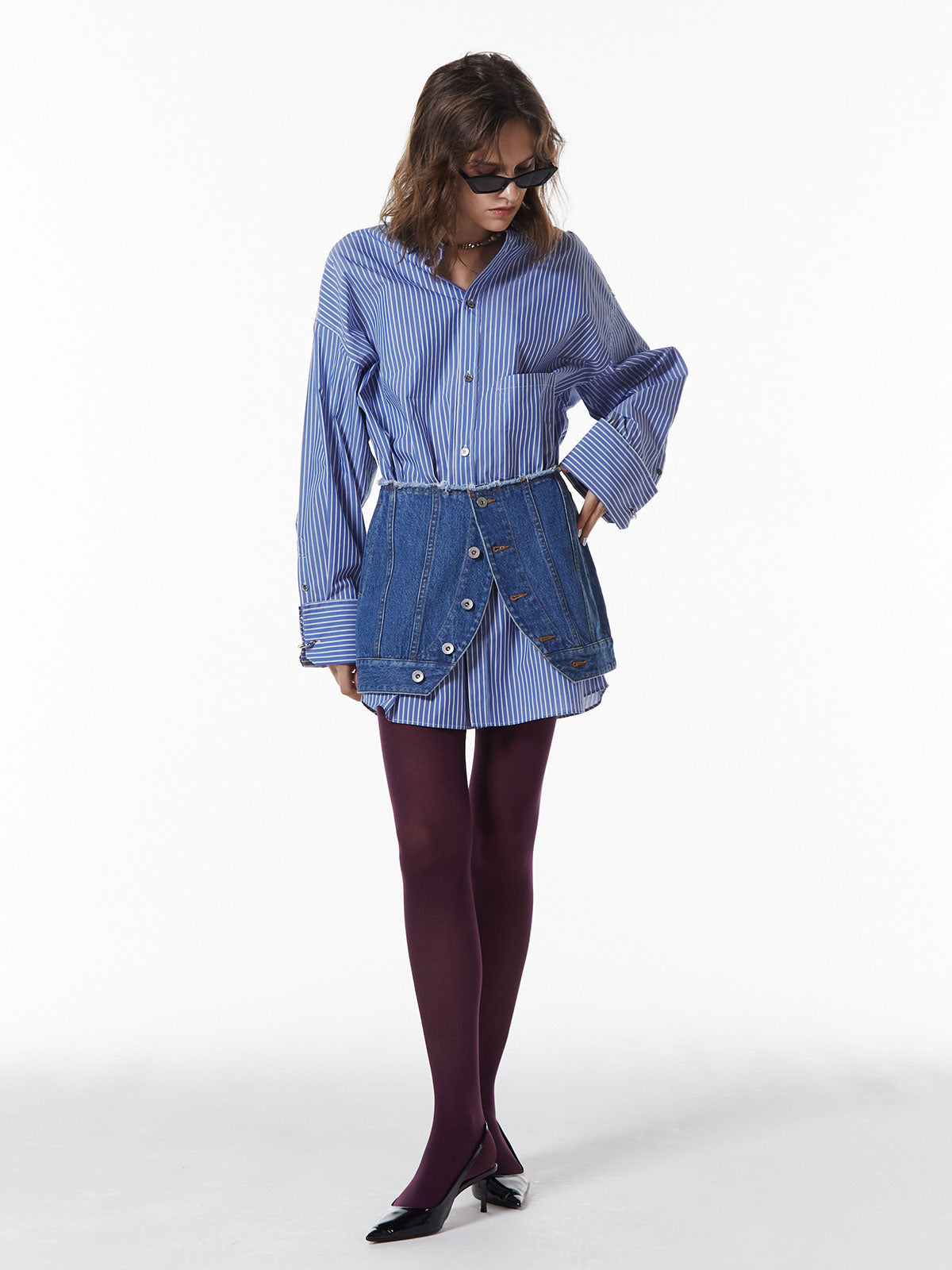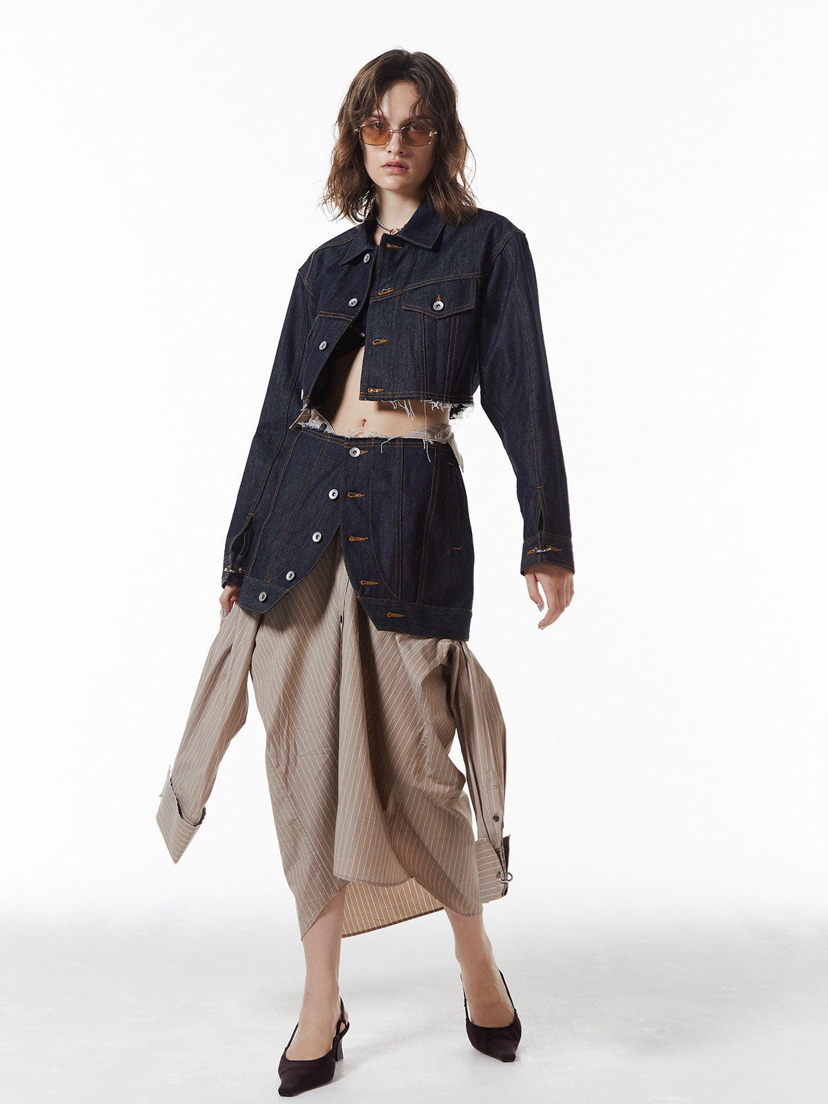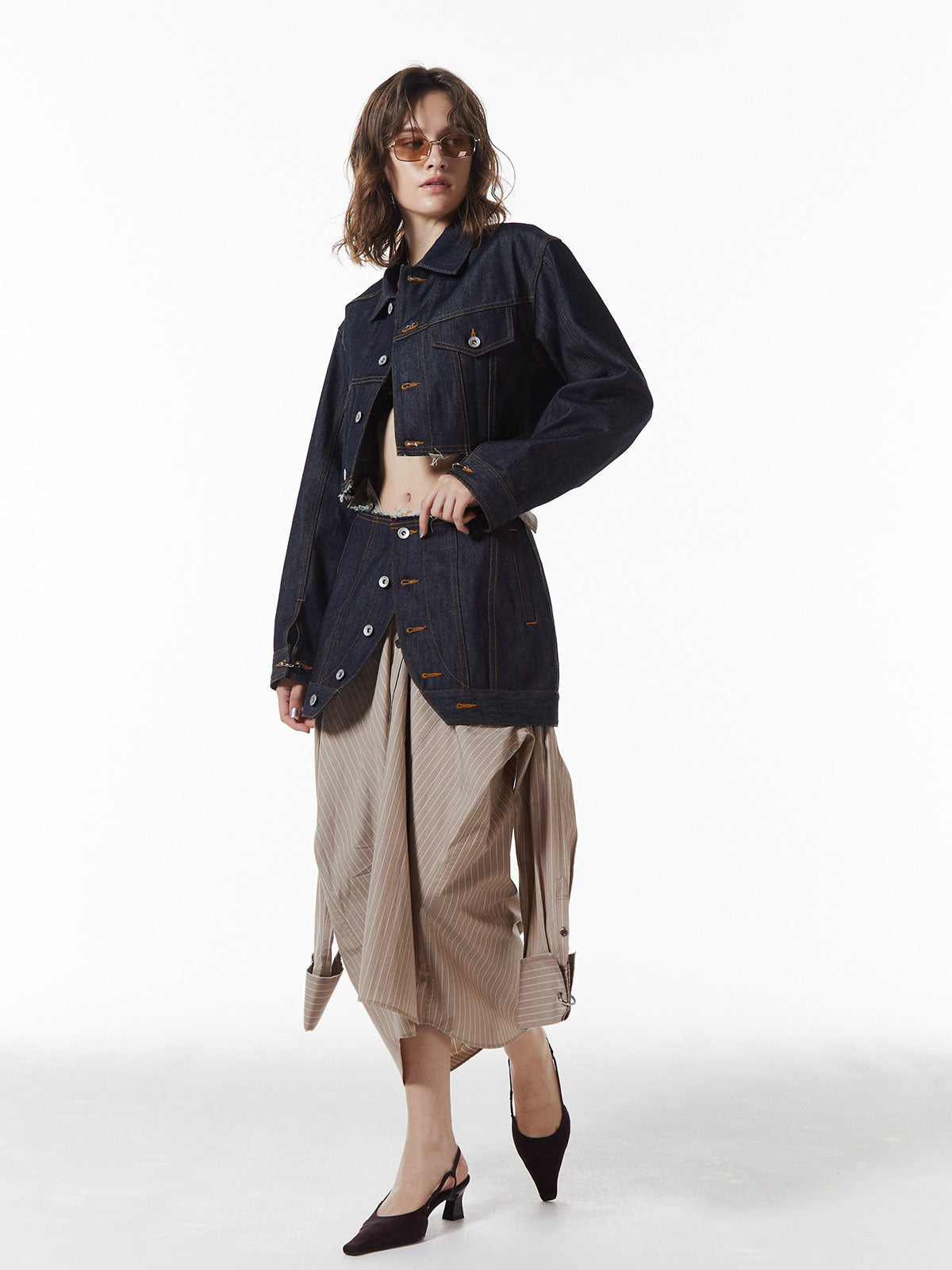 マルチウェイで使えるデニムミニ、ラップタイプデニムオンデニムで重ねたり、スラックスの上から、ジャケットの上からなどさまざまなスタイリングに活躍します。