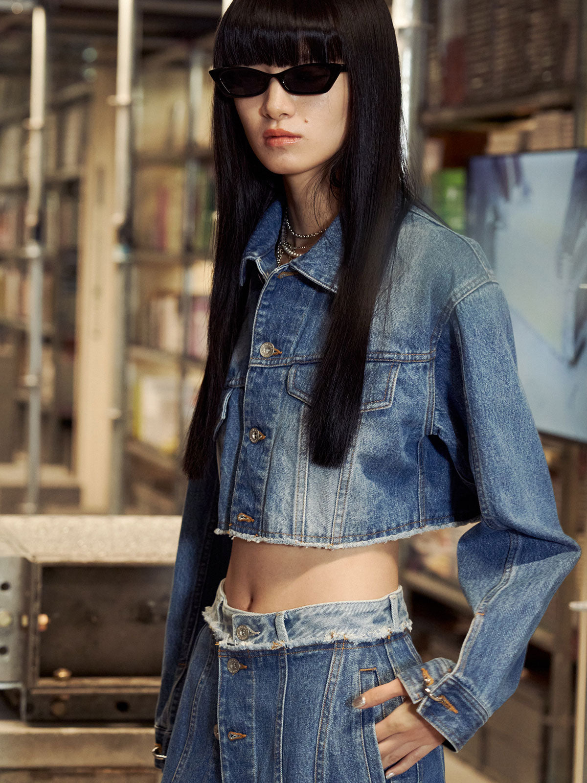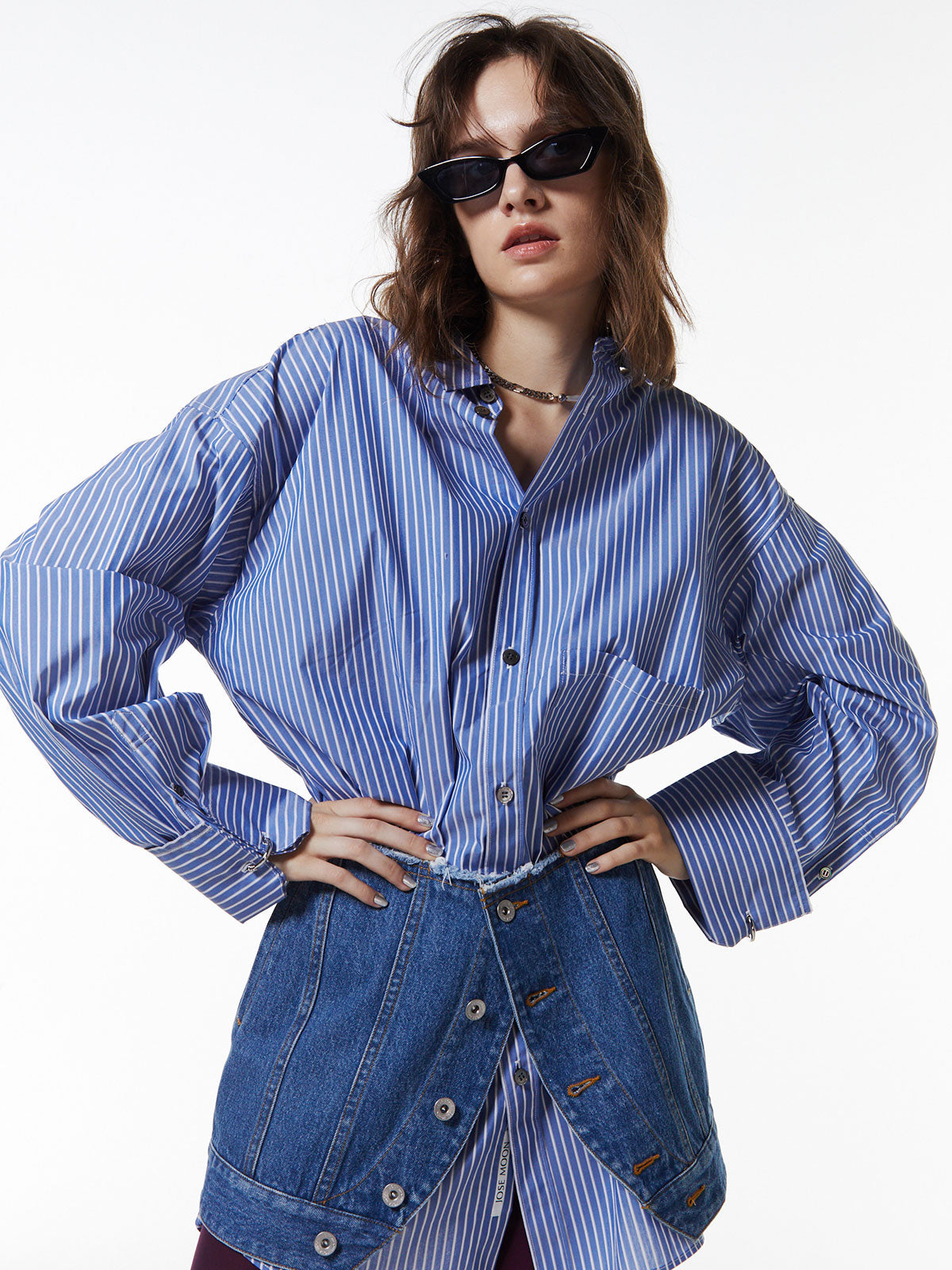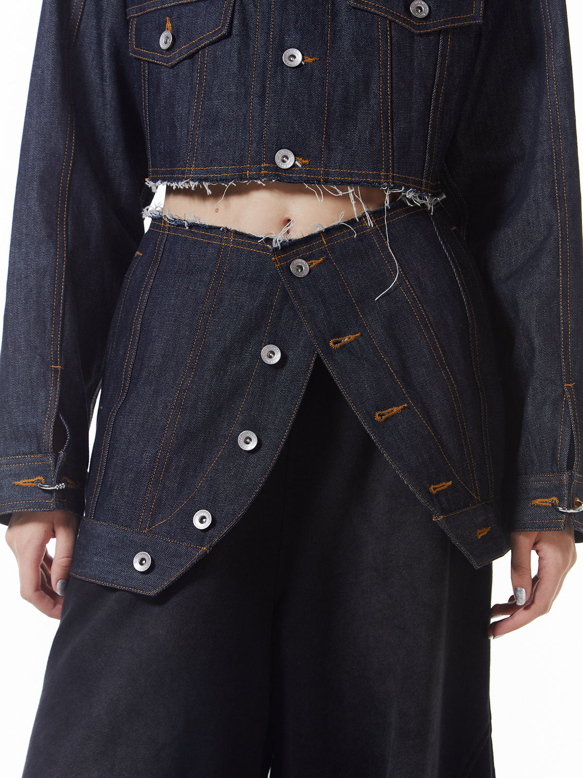 マルチウェイで使えるデニムミニ、ラップタイプデニムオンデニムで重ねたり、スラックスの上から、ジャケットの上からなどさまざまなスタイリングに活躍します。