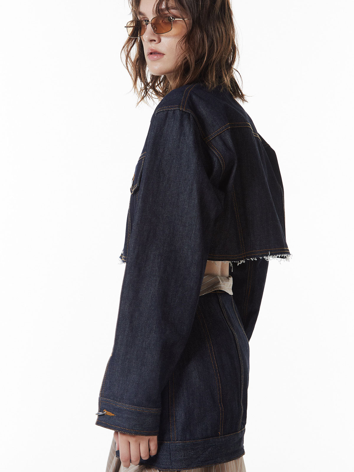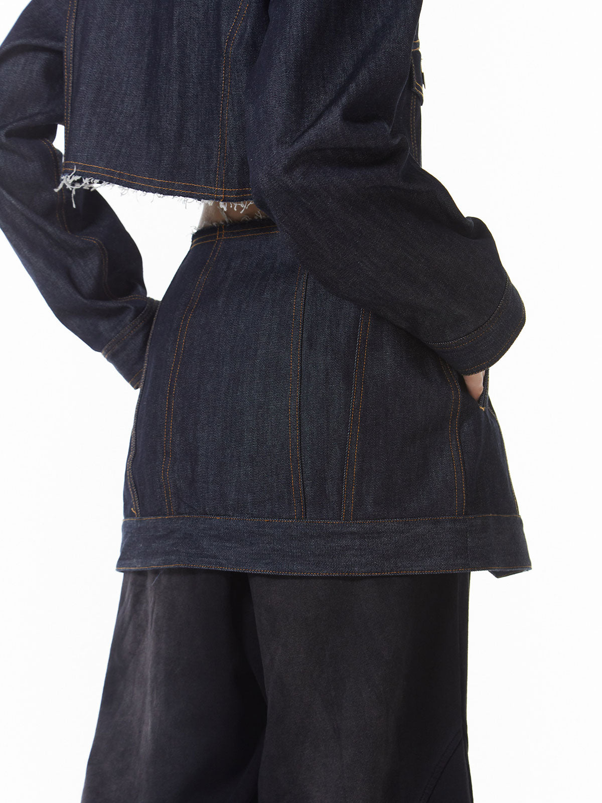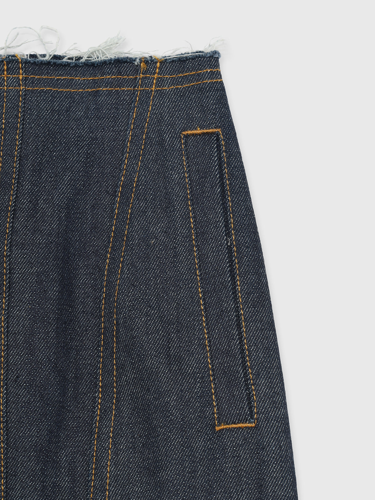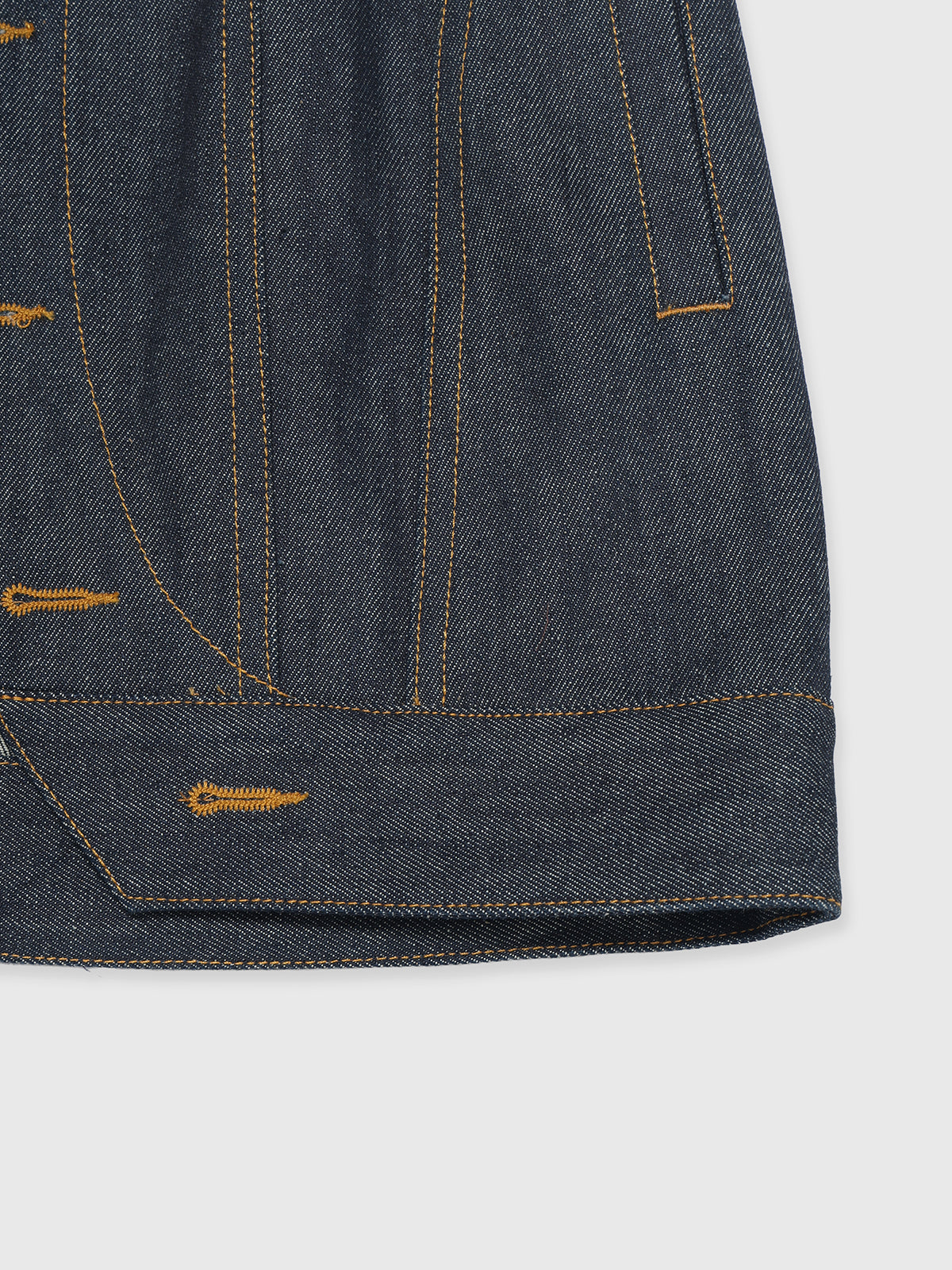 裾にラウンドカーブを施し抜け感もプラス、綿100のデニムでお作りし、履くたびに馴染みスタイリングを飾ってくれる1枚。