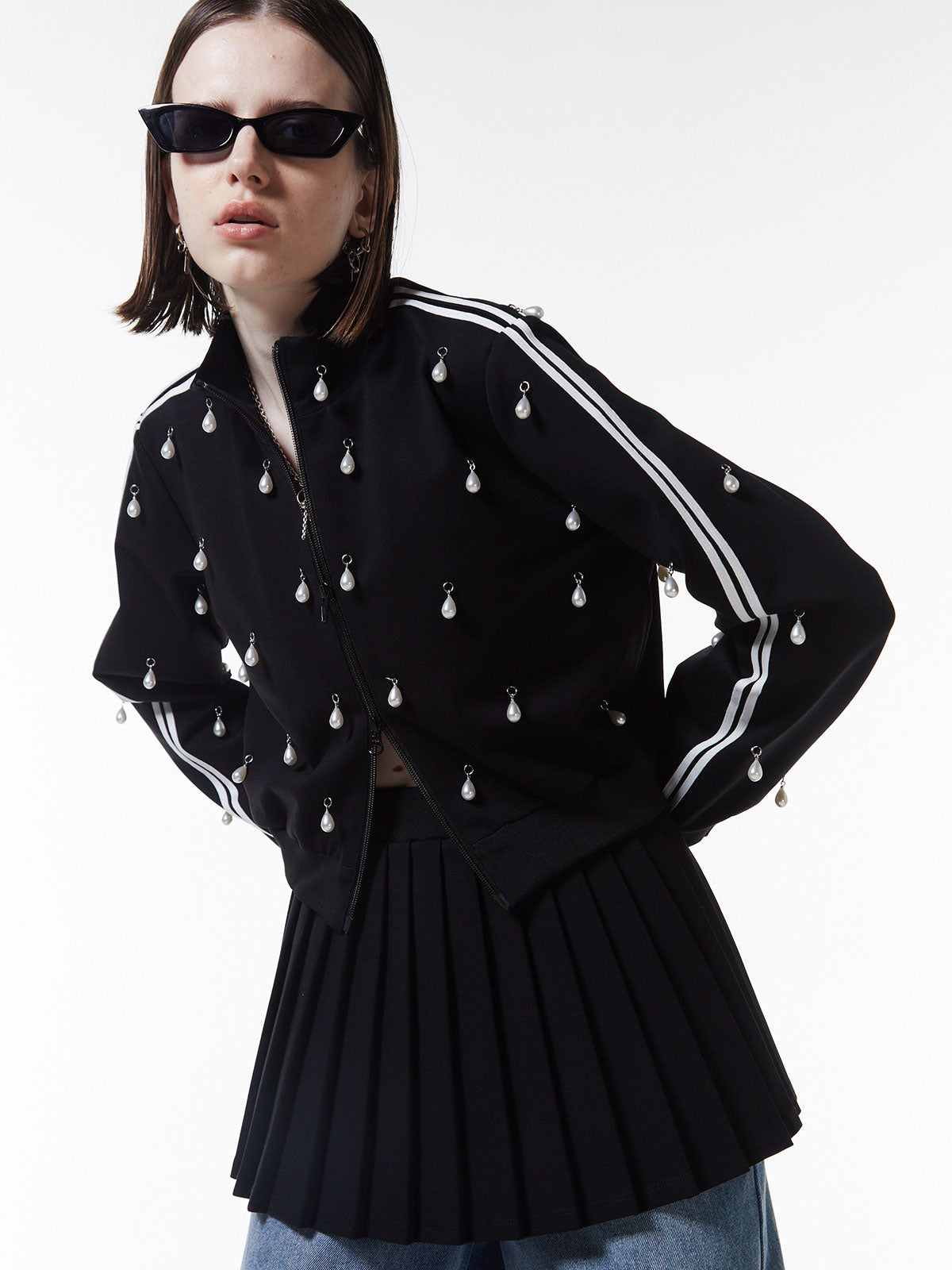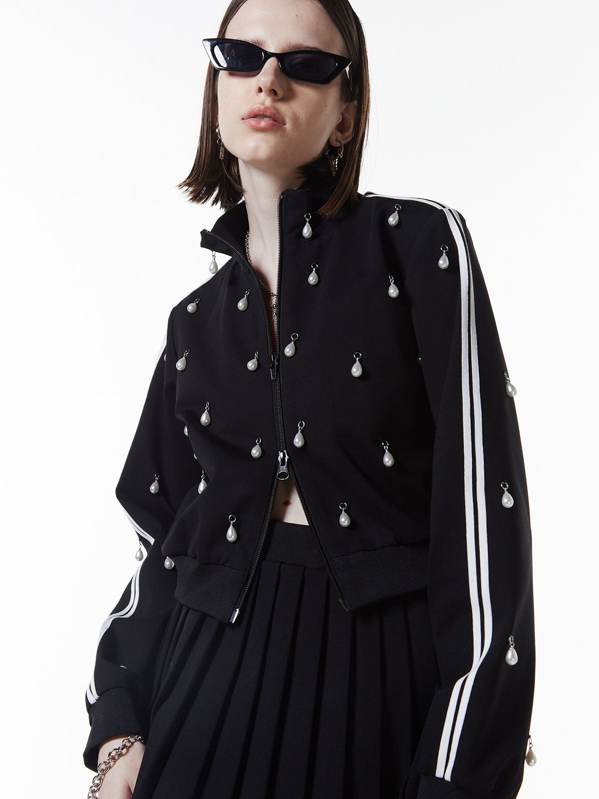 同素材のジャージとセットアップでの着用はもちろん、短めの丈感を活かしてパンツとのレイヤードスタイルもおすすめです。
